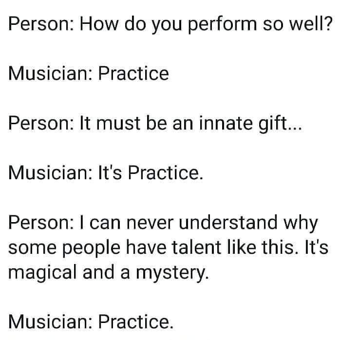 I had the privilege to be in a vocal jazz group back in college with this incredibly skilled musician, who has gone on to make an incredible career of it. She was far from the most naturally gifted performer in the program. She was the hardest working one who practiced and experimented the most.