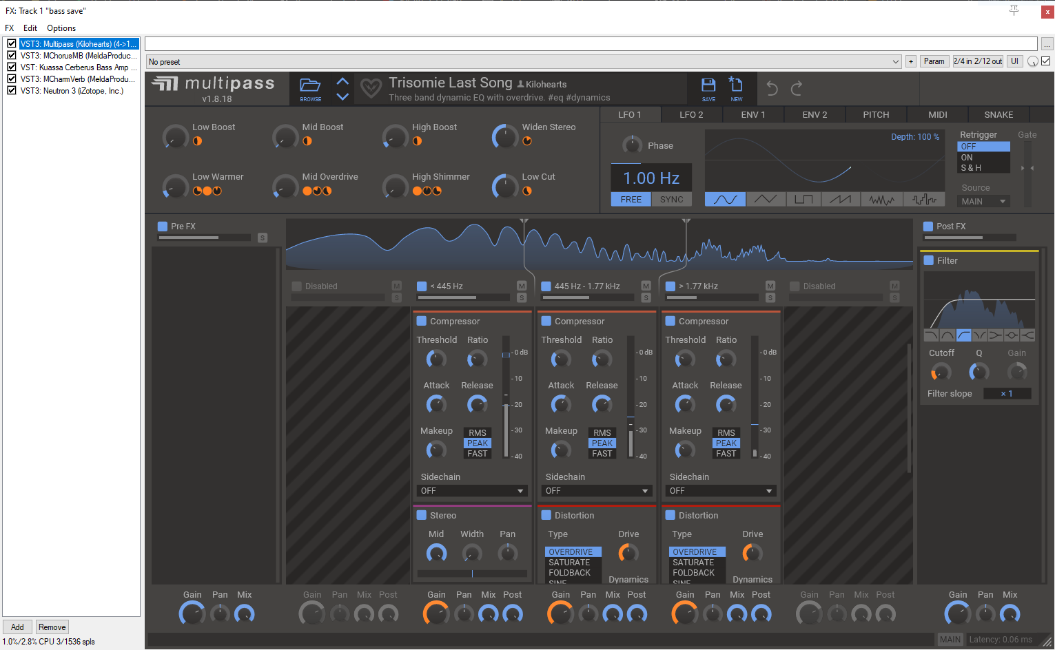 My primary compression I do for bass track tone at the very start of the track is usually a variant of this Multipass preset I have tweaked a bit: