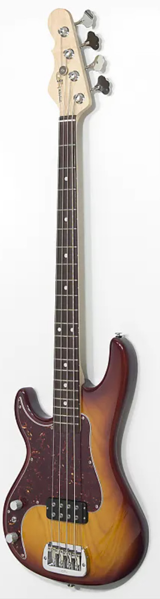 Thats my thoughts, but it has Aguilar pickups and a Gibson replacement bridge, so , and I recall another company making basses with those white stripes.