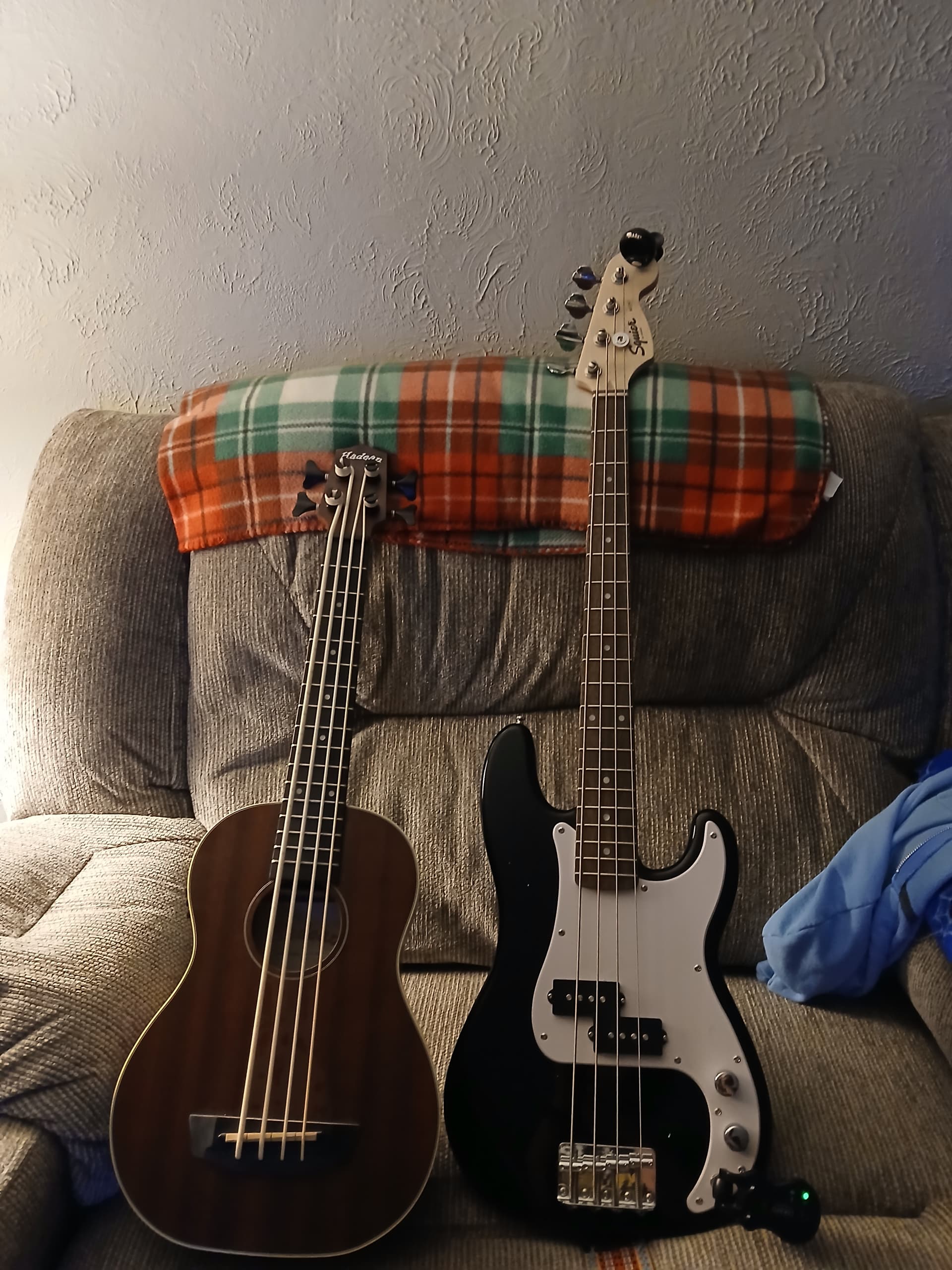 Here are mine- I took off the pick guard and put tie-dyed vinyl on it - just for fun. Its a squire mini bass- then a halden ubass- and a Yamaha TRBX304 - here’s hoping i can learn to play them!