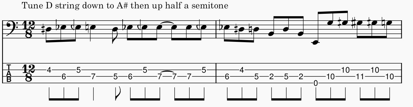 If you’re feeling adventurous, it is actually playable on a regular bass. You just need to tune your D string to B half flat. Basically, tune it down to A#, and then up a little, so you’re half way between A# and B.