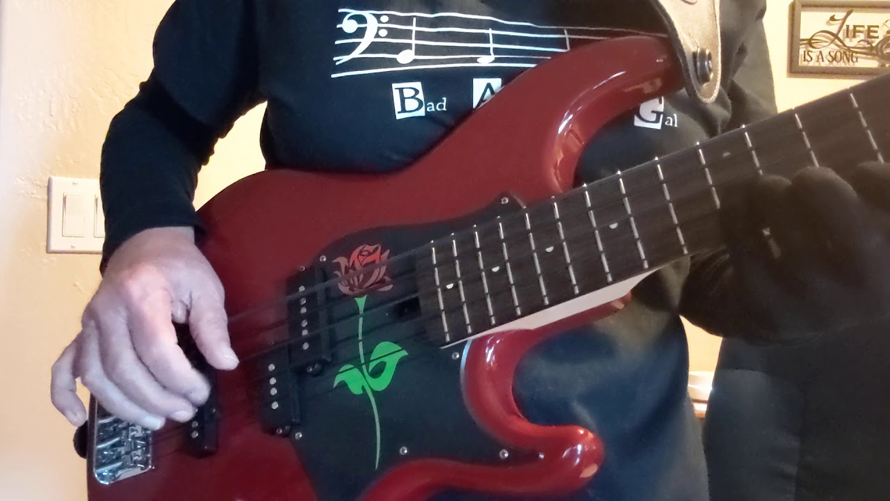 What you can do on the bass is: Play standing up and lower your bass. Doesn’t have to be Robert Trujilo low, but, well, he doesn’t need to angle his right wrist, does he?