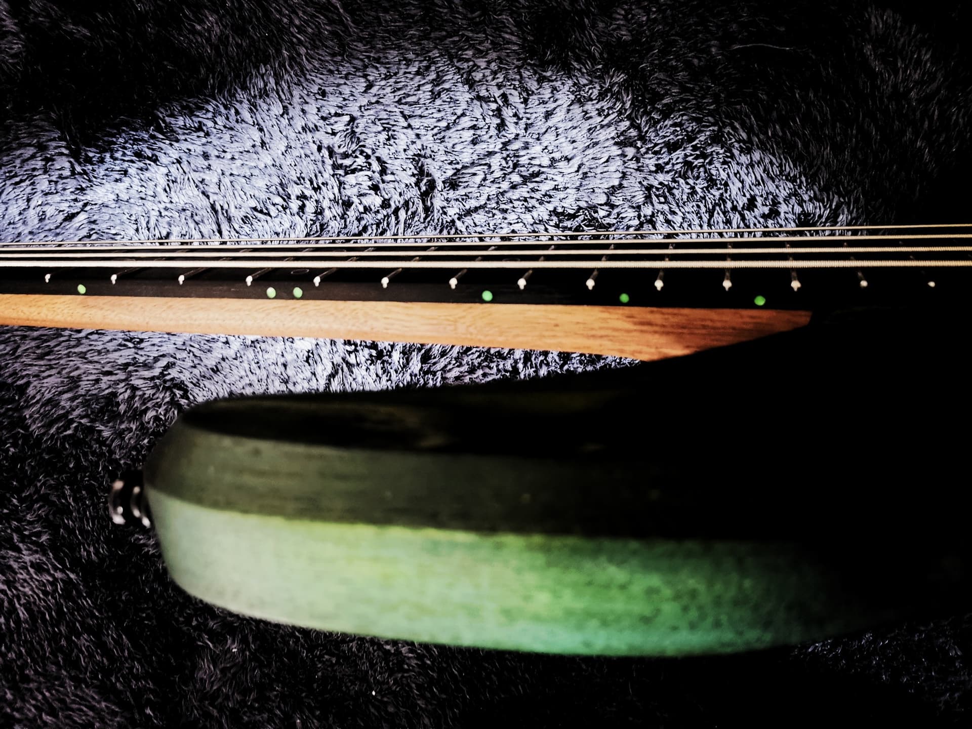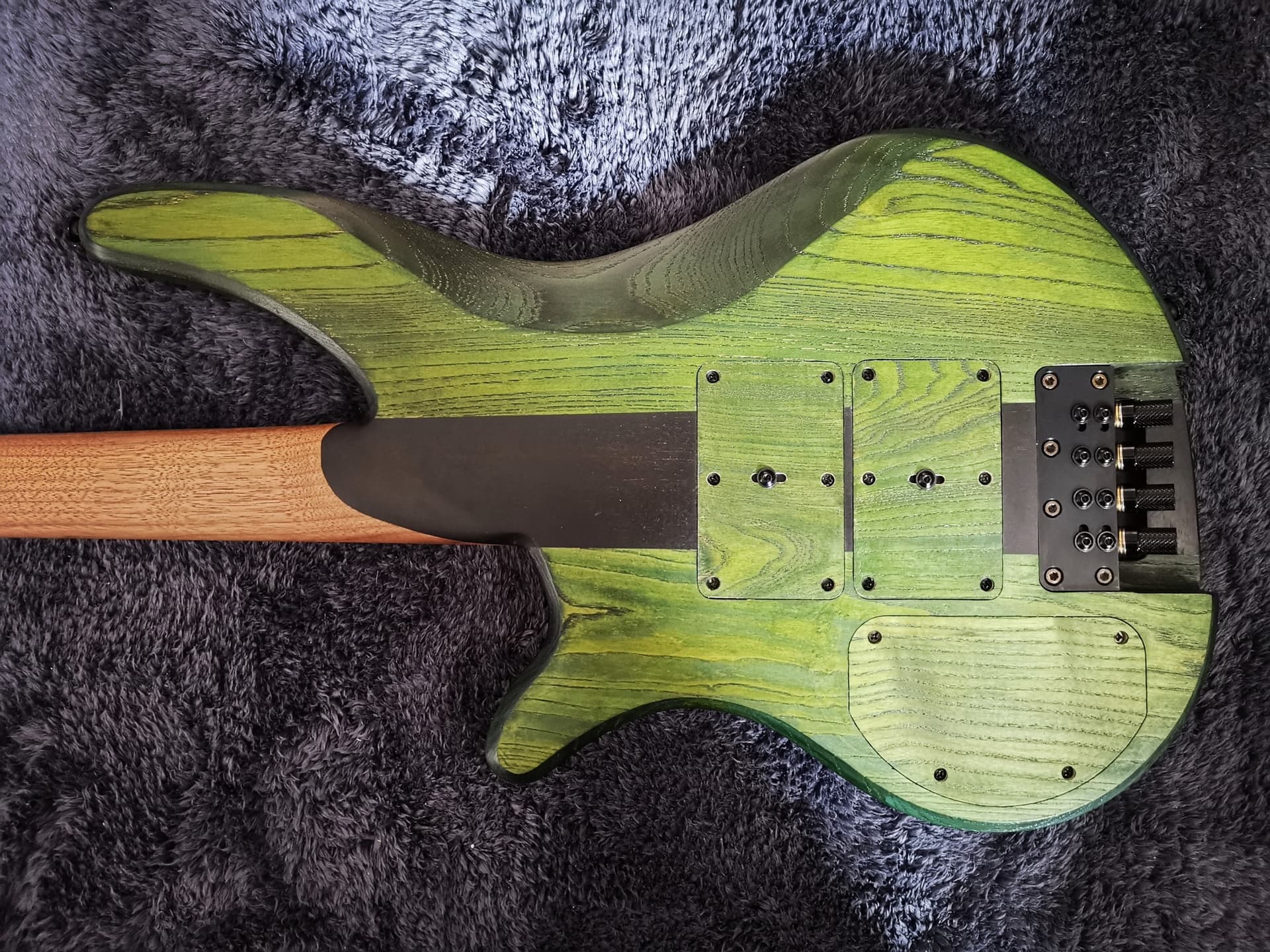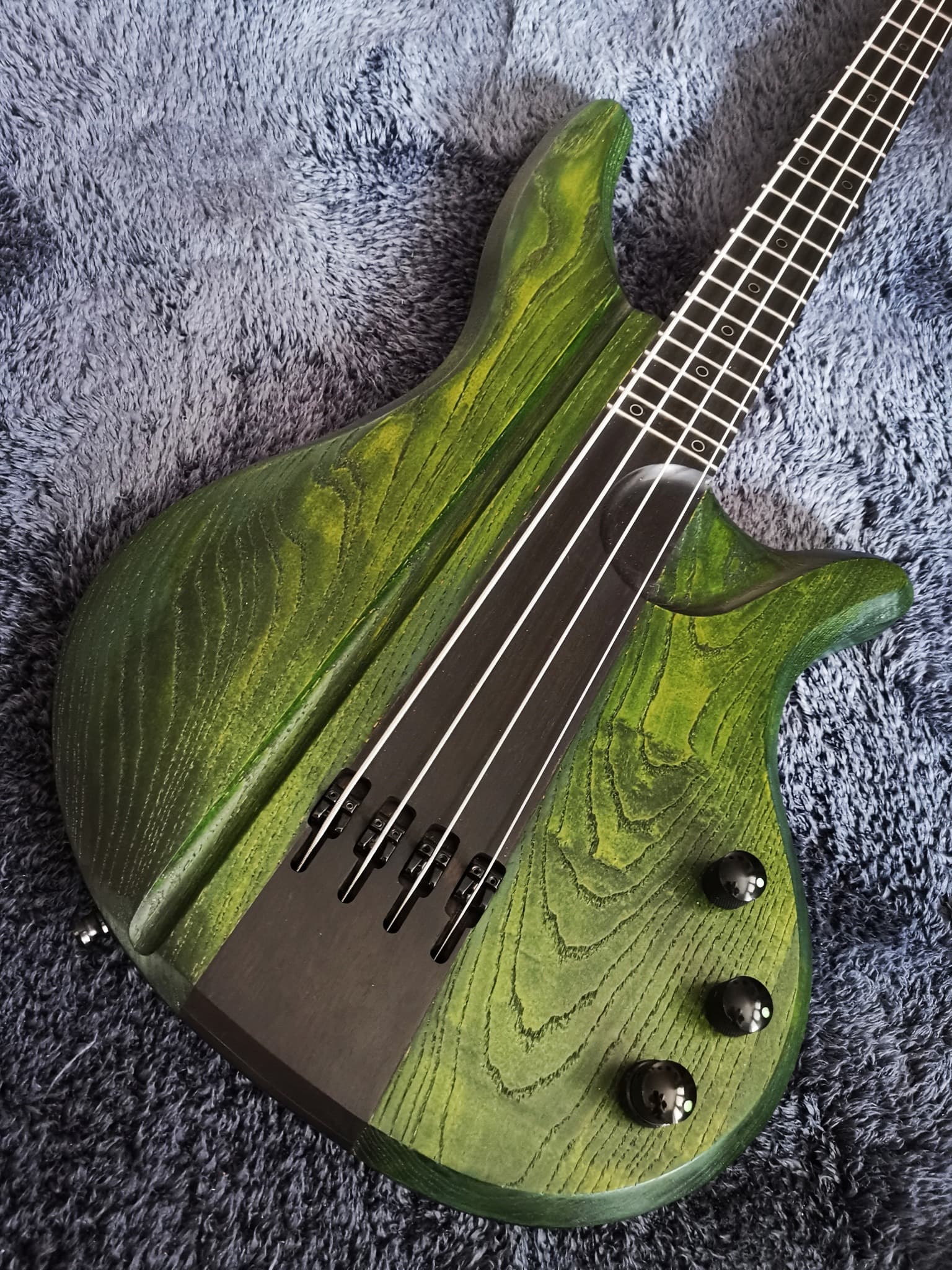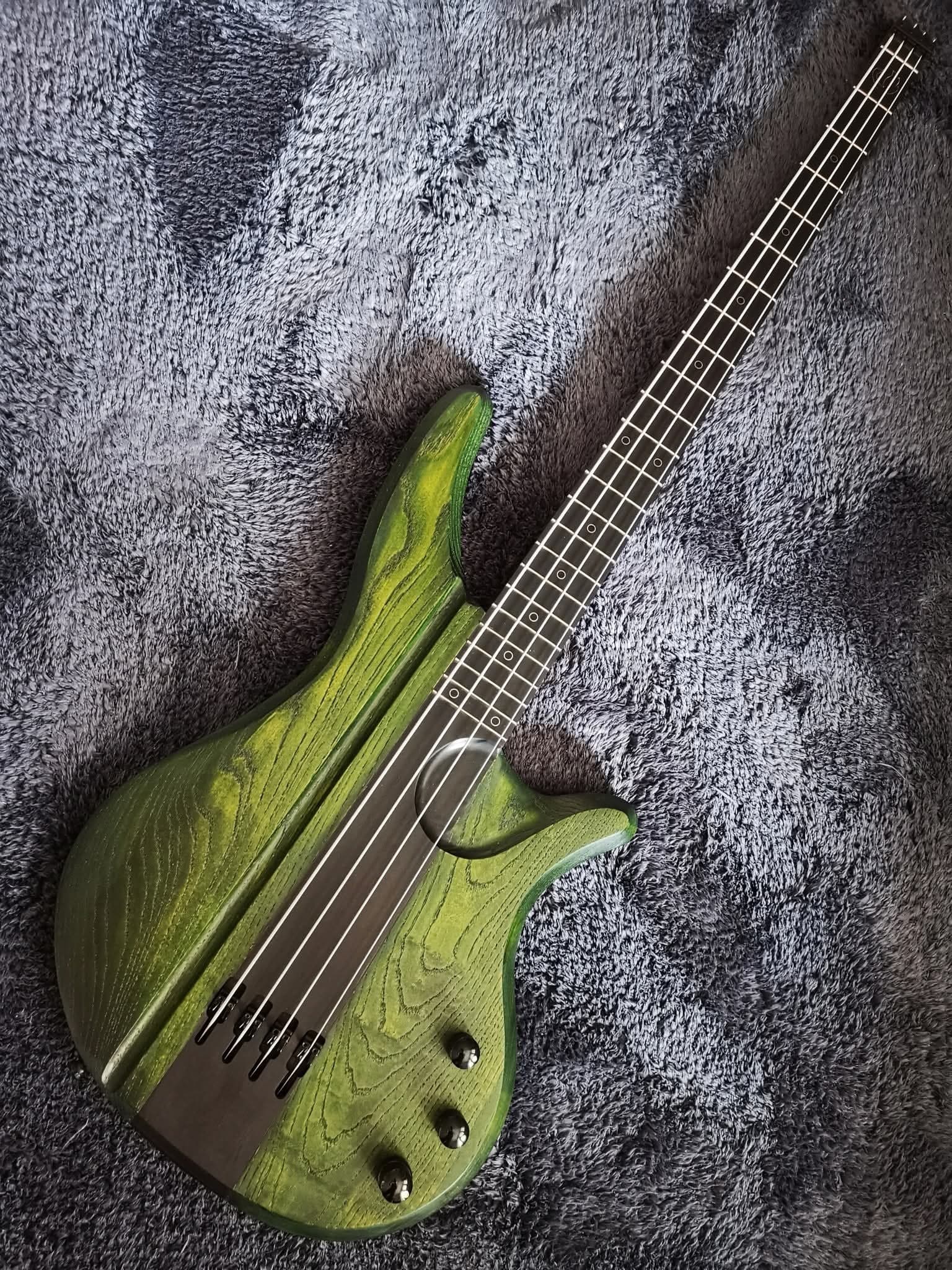 GOOSEMAN “green lantern” bass This bass is innovative - hidden and adjustable pickups, hidden tuners, inverse thumb rest, glow in the dark side & potiknob-dots. The weight is only 2,9kg ( 6.39lb).