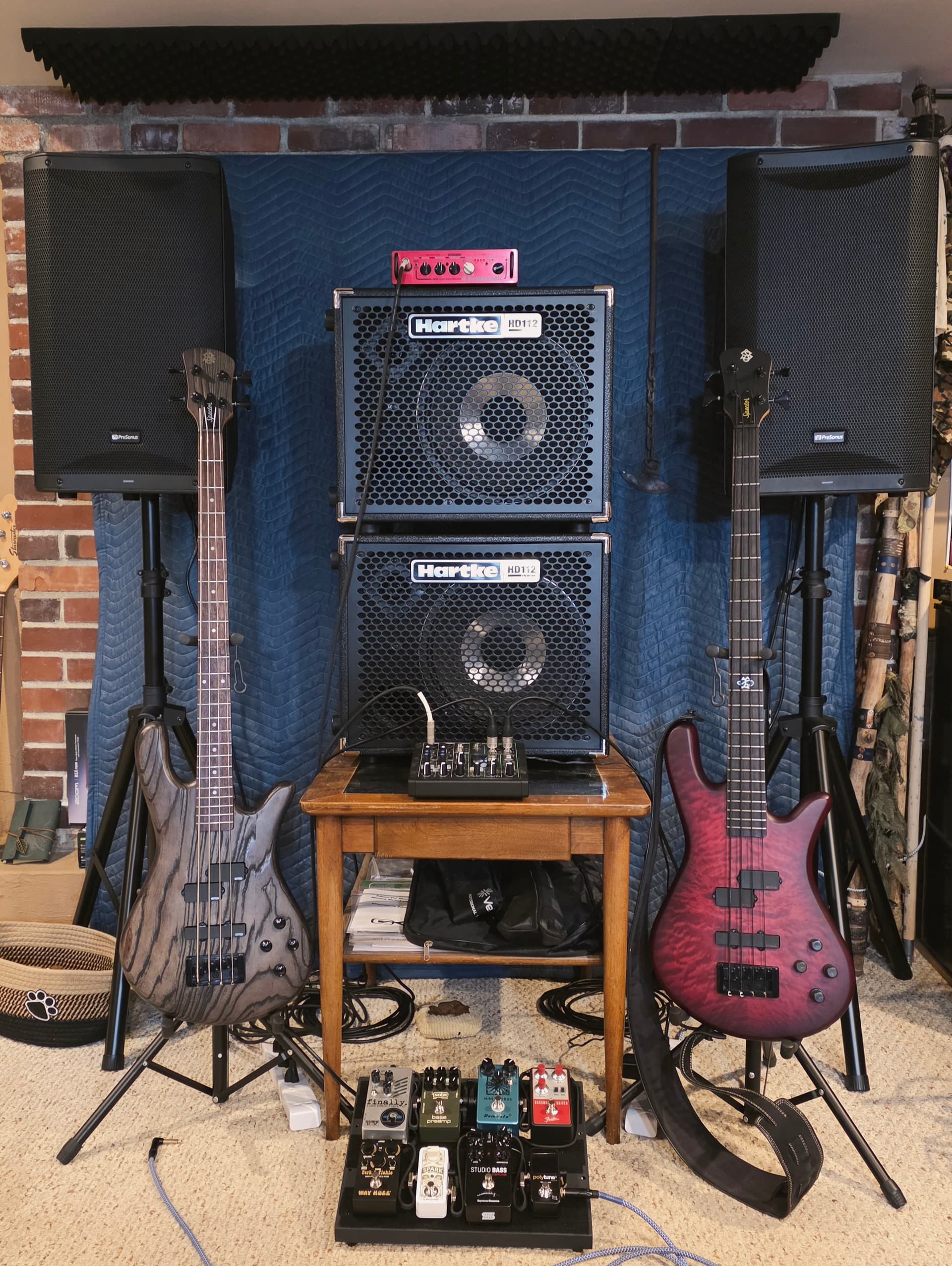 My favorite basses so far are the Spector NS Pulse and NS Pulse II. I’m a huge fan of Mike Starr and his tone. I can’t afford an American made Spector, but the Korean made Pulses are pretty damn awesome. I replaced the preamp with one similar to what Starr had in his Spector. It can sound as clean as a bell or dime the bass and treble knobs to get that Alice in Chains growl.