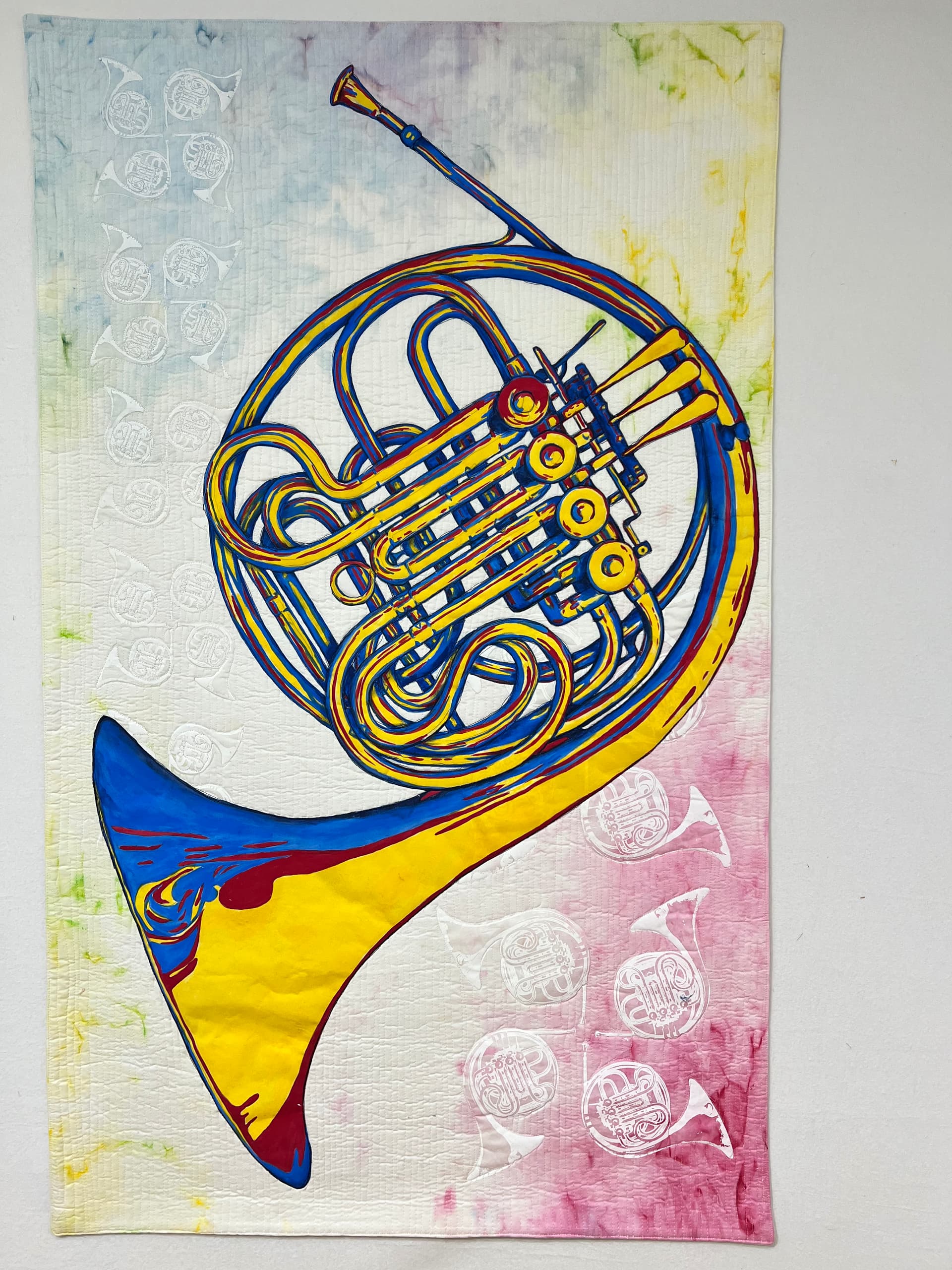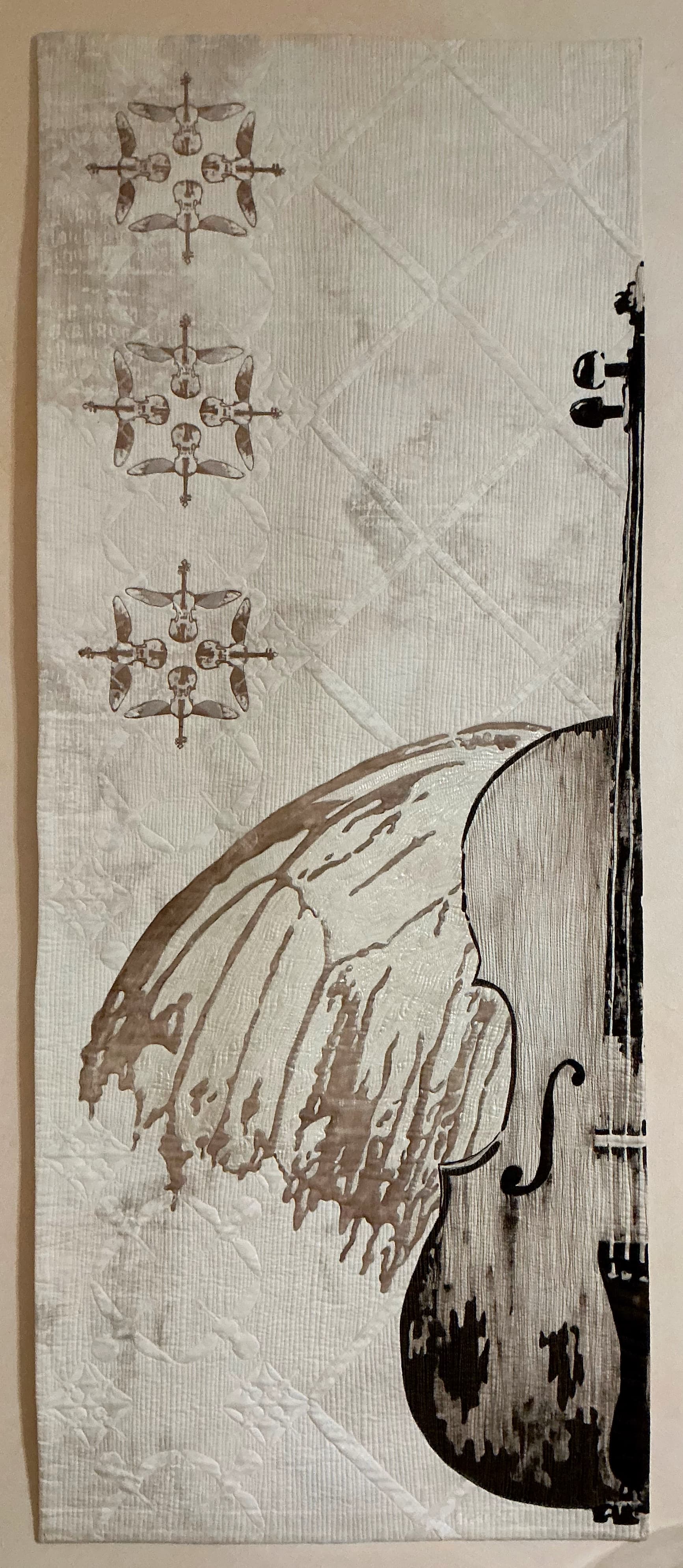 Not drawings - but thought you all might enjoy a couple of my music related artworks. I dye, paint, print, and stitch them.