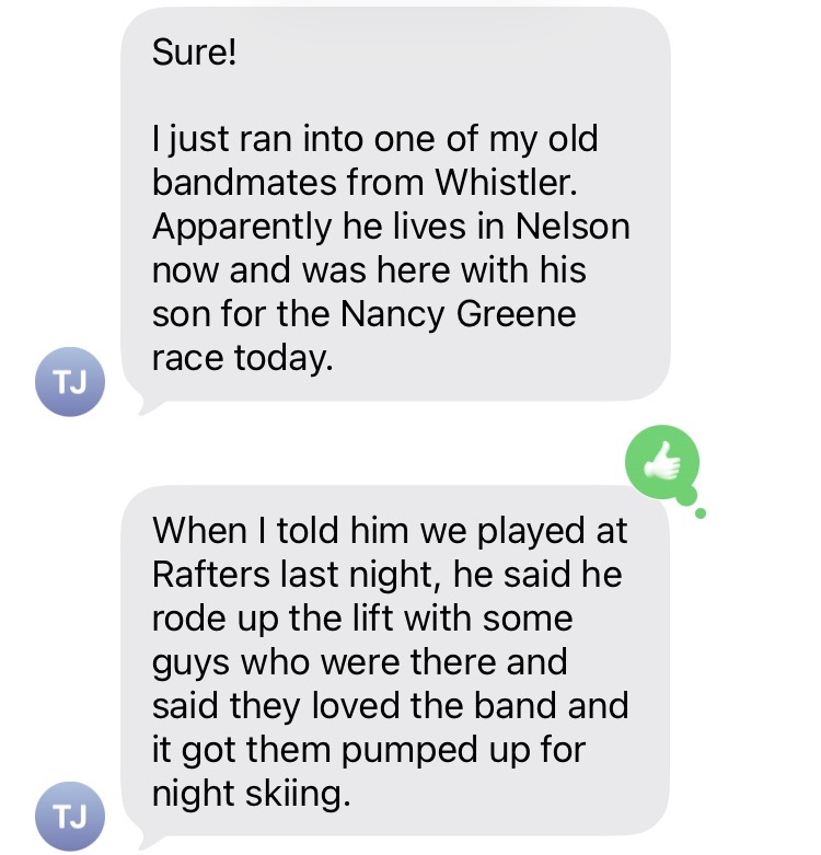 Saw this text message on our band thread today. That’s all I’m looking for, people having a good time.