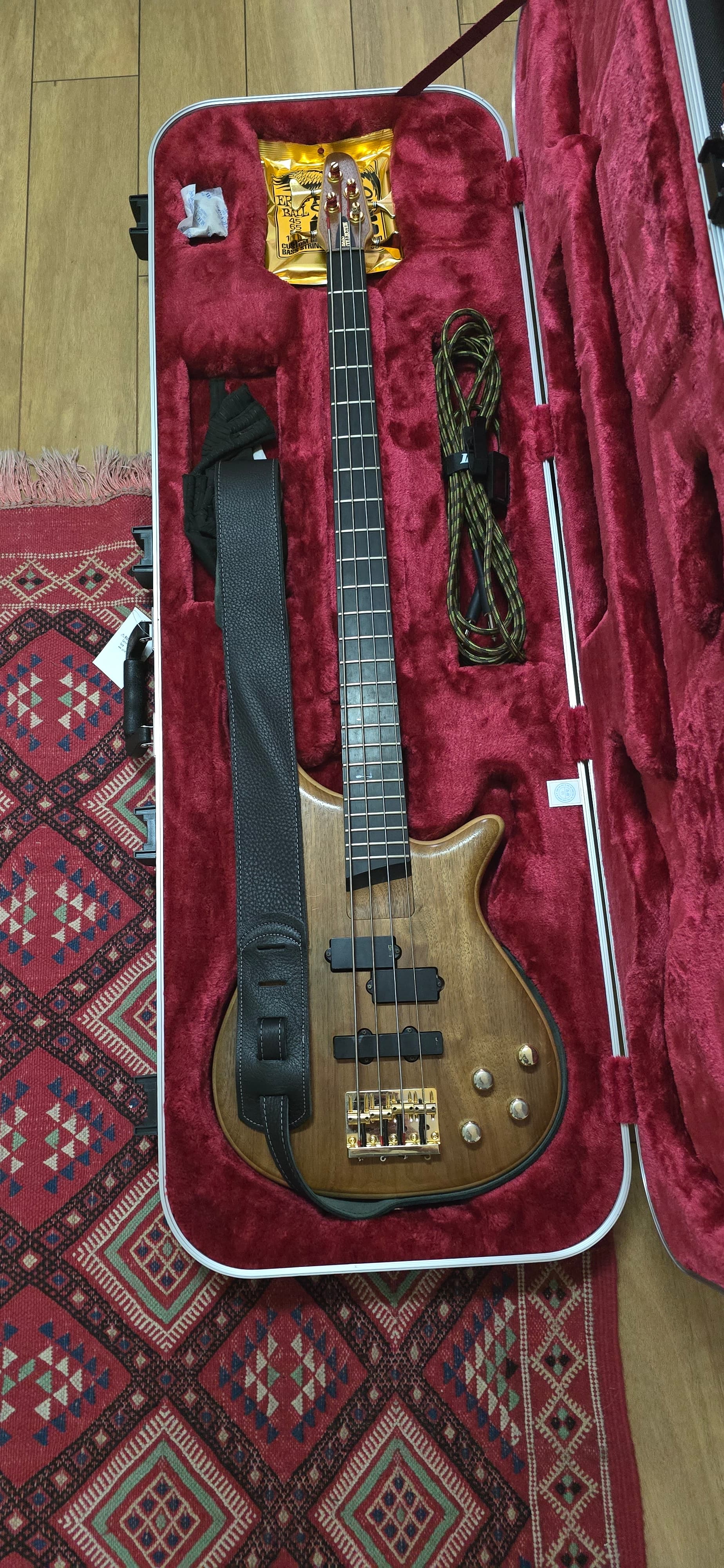 The bass, a Hofner Shorty, was second hand, cheap, a bit cr@p. But by taking the neck off, would fit into a suitcase.