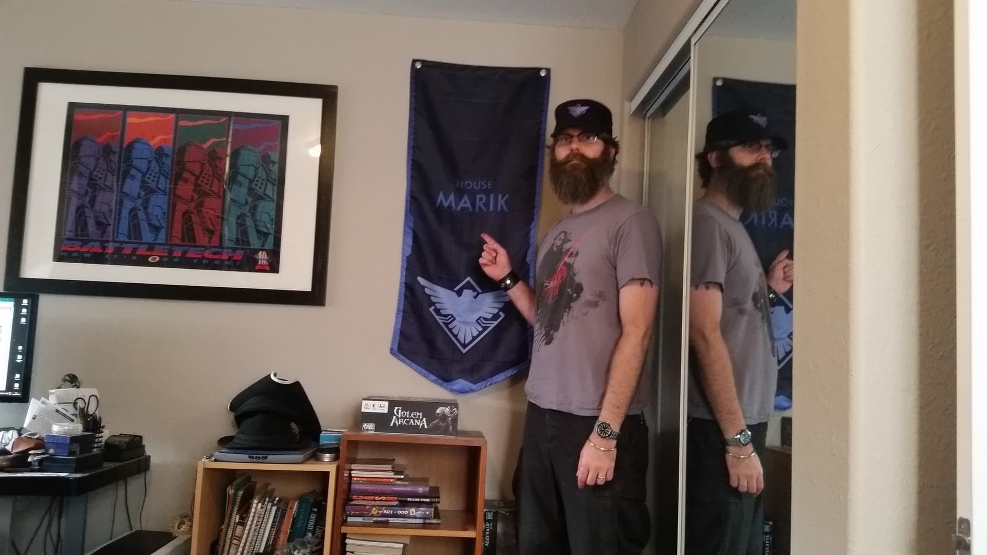 Haha. I have a House Marik banner just out of frame in the desk pic.