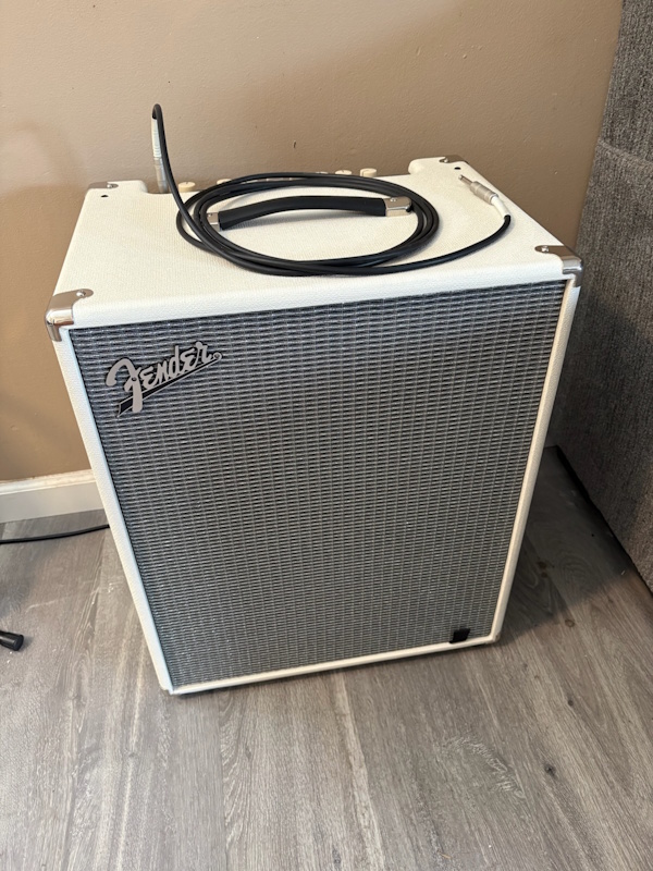 That is a brand-new Fender Rumble 500 in the Guitar Center exclusive ivory color. It is waaaaaaaaaaay more than my needs require, but I figure, if ever I start playing with people or gigging, I’m pretty much covered. And the ivory almost perfectly matches my Kiesel! ![]()
