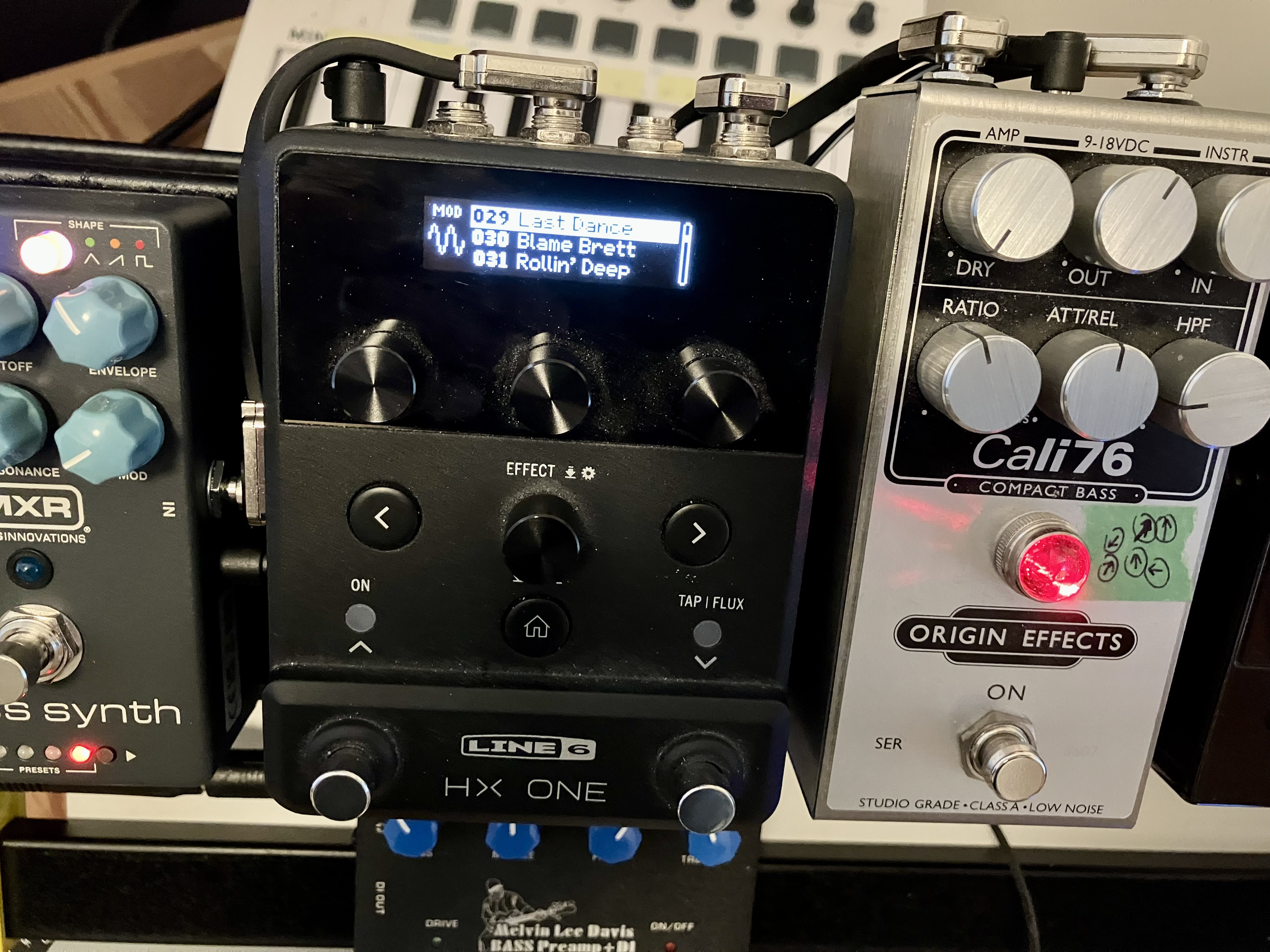 First song maybe needs a bit of overdrive so I turn on a DarkGlass clone. Song finishes, turn one knob on the HX One and select the next song / effect i.e chorus. 20 seconds later and we are into the next song.