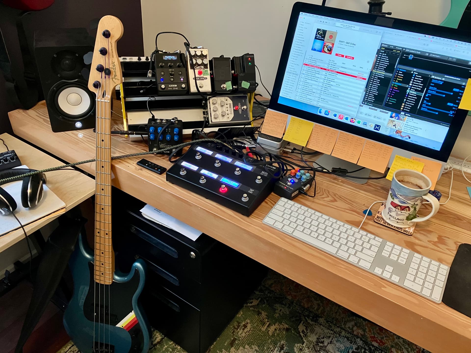 Messy desk today. Creating new patches (one per song) in my new HX Effects unit, creating a set list and then testing the levels etc through the amp ready for our next gig.