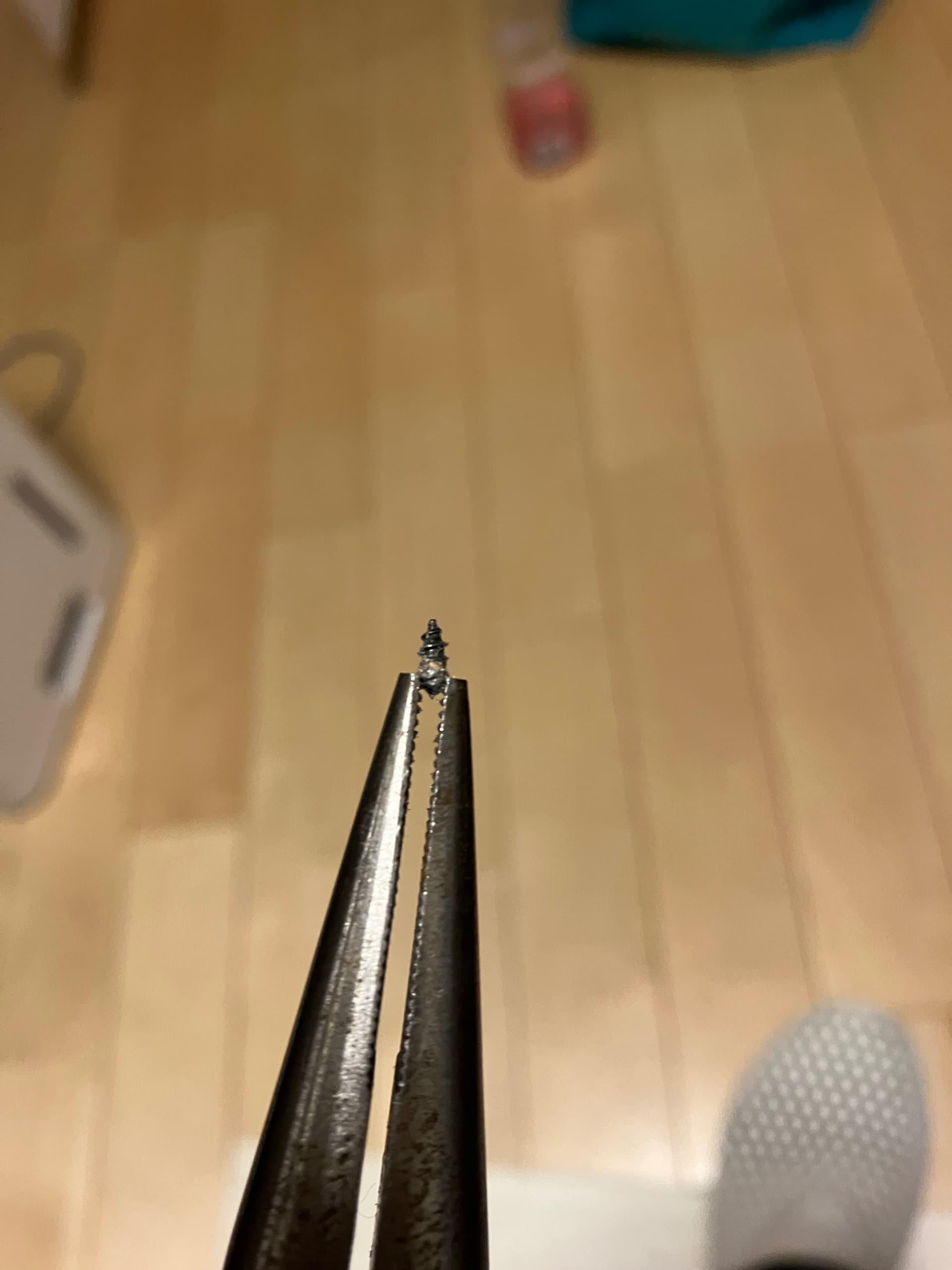 I got there by slowly excavating minimal amounts of wood around the screw, first with a pin vise and then with a knife. There is also not much thickness to play with here - maybe 6-7mm - and itâs a confined area. Resulting damage is not bad and should round out and allow plugging pretty easily.