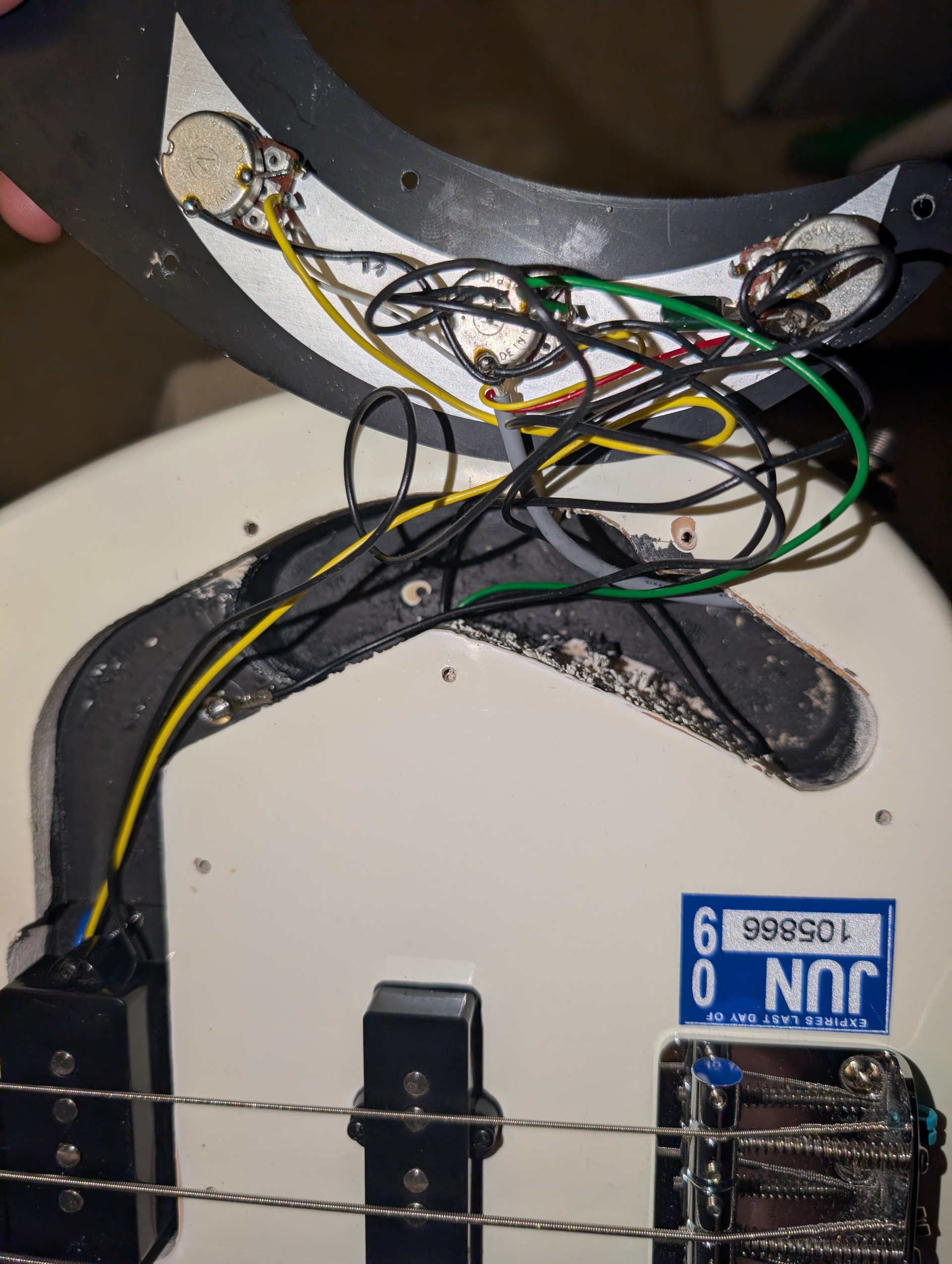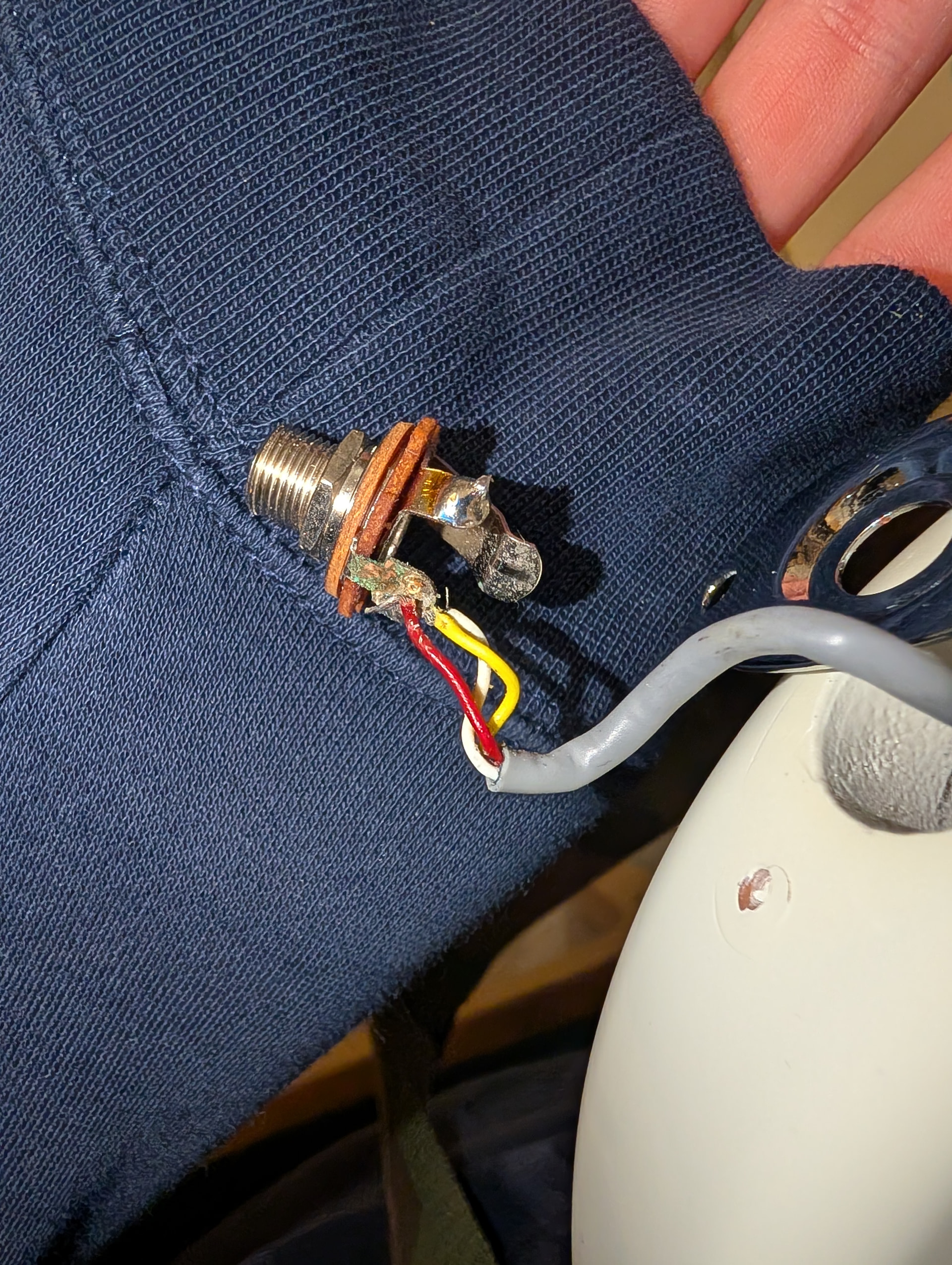 Picked up my bass this morning and was noodling away for about 5 minutes until suddenly the amp started humming. At first I thought it was the cable but it seems like the ground wire has broken. It looks like it broke off the output jack on the inside but I can’t seem to find any loose wire hanging around. Will I need to remove the pick guard to find it on the inside?