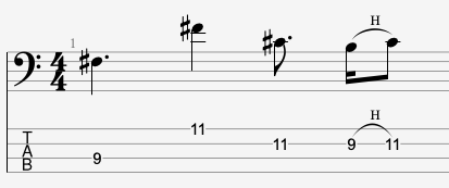 And then the B on the 9th fret of the D string is on the AND of FOUR, then hammers on to C# on the UH.