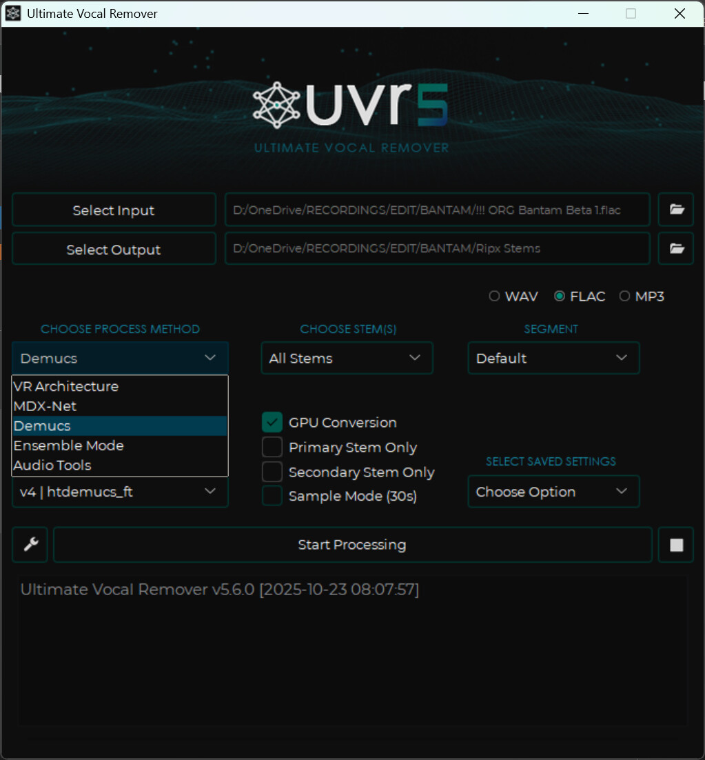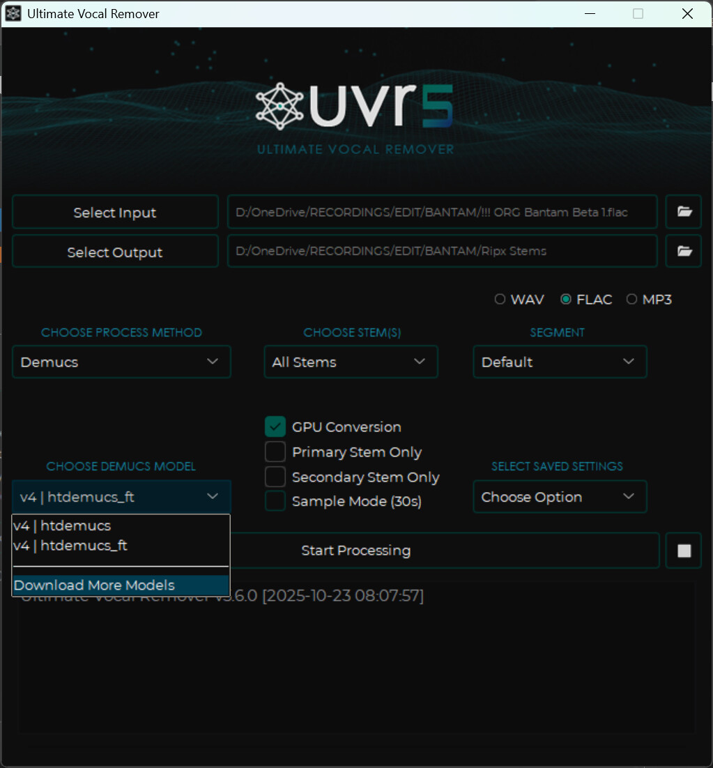 I probably shouldn’t have given it an 8 minute song to separate. It’s taking some time. I used the “htdemucs” model that was installed with the UVR app, and I just downloaded the “htdemucs_ft” model. I’m using the default one now, but will try the _ft model when the first separation finishes. What, if any, differences have you noticed between the two?