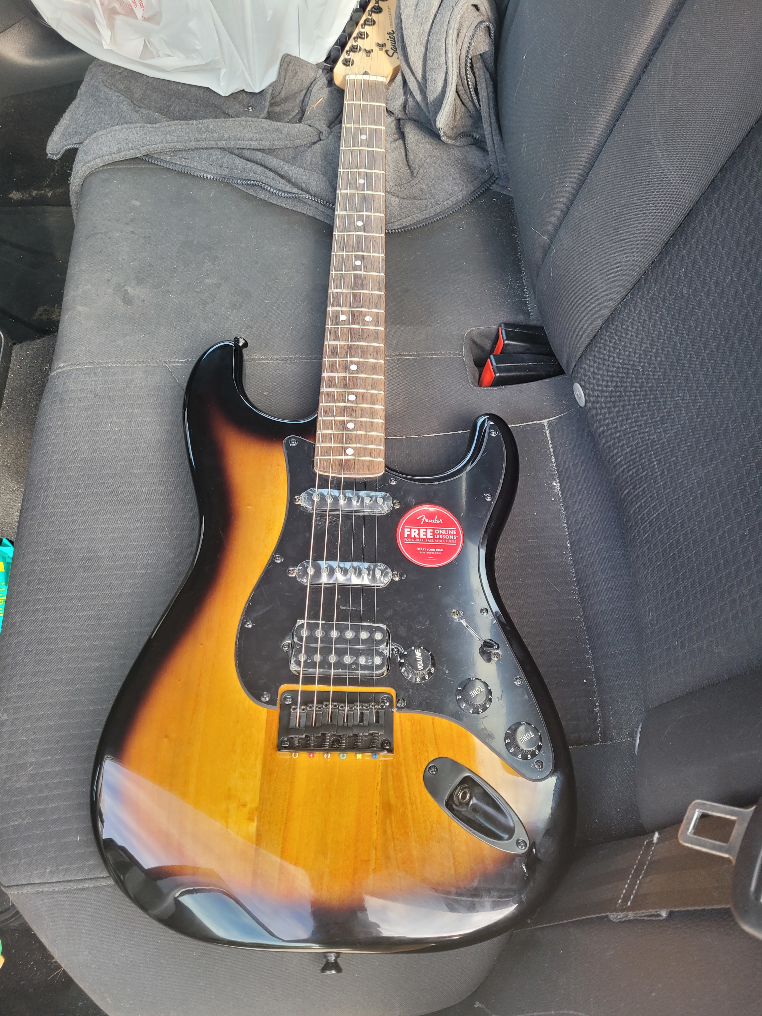 I did the same thing, picked up a Squier Strat last Saturday when my wife told me to go to Guitar Center while she had friends over for a girls day. Nothing fancy, just an inexpensive sidebar to my bass.