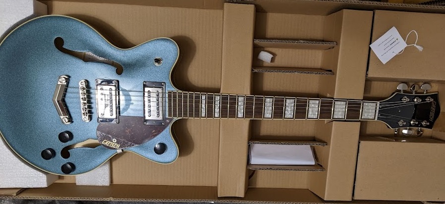 What a lovely guitar – love Gretsch, and I love semi-hollows. And blue!
