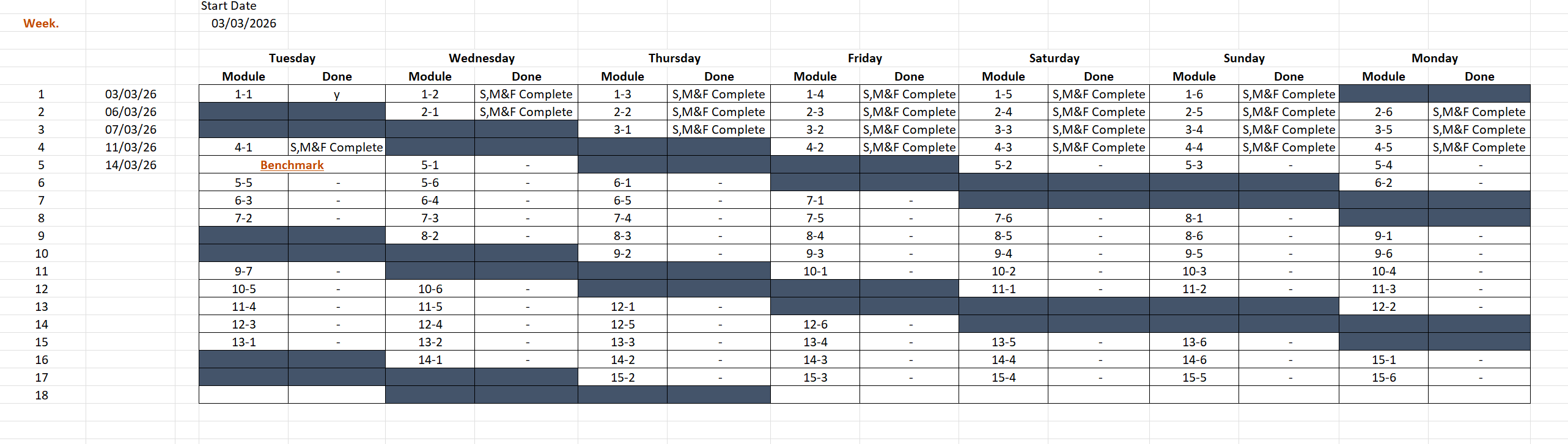 Personal Schedule - I hope to be able to exceed this time as a personal goal but it’s not critical.