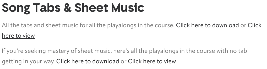 The link I shared above, for the Practice This tab, is a pdf file. My browser has a download button for it. The 50 songs tabs aren’t downloadable. But other than that, transcribing it yourself is a helpful exercise…