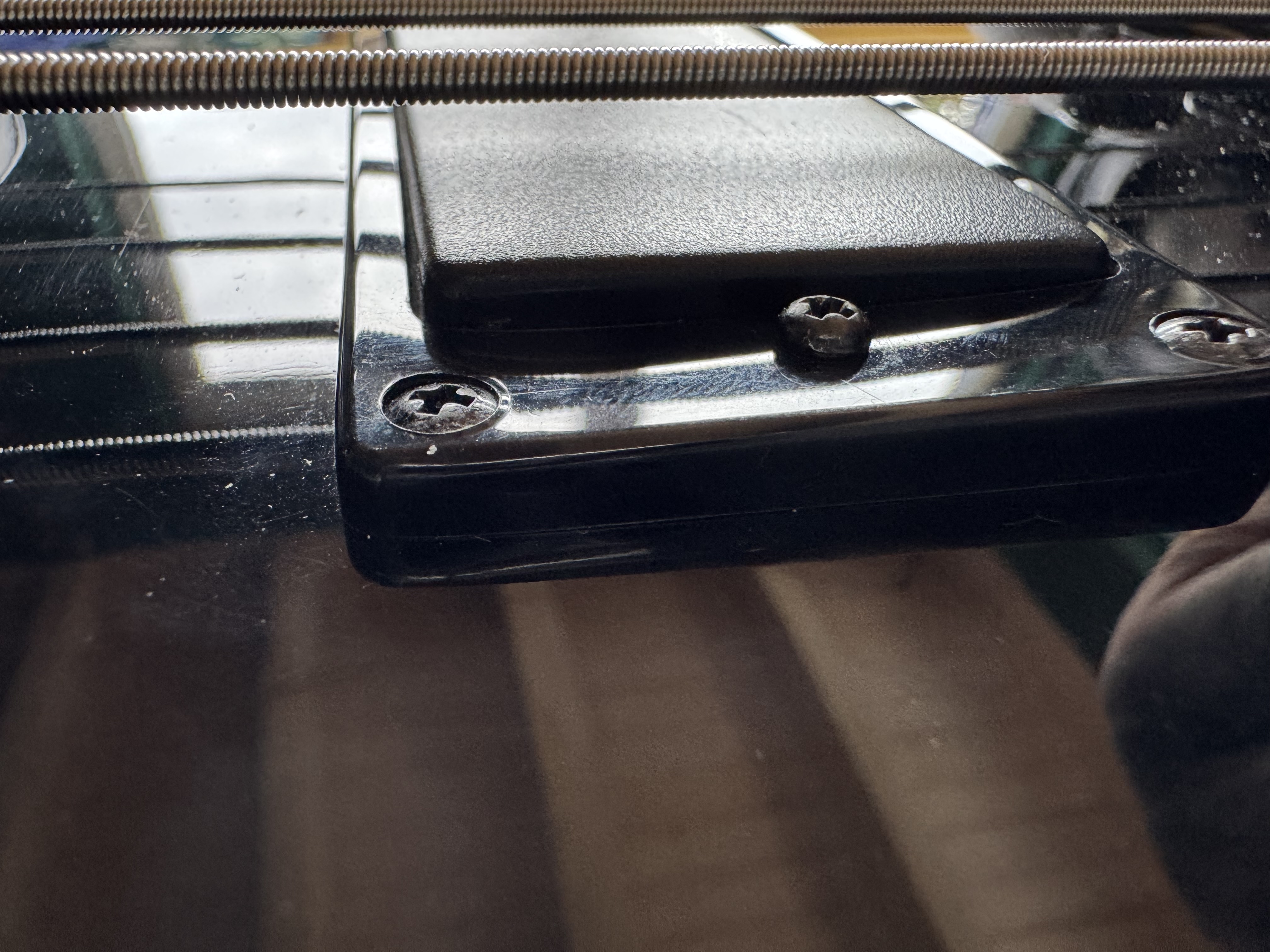 The screw in the middle there is the pickup height adjustment, tighten it to raise the pickup, loosen to lower. If you loosen too much it will pop off but it’s an easy fix.