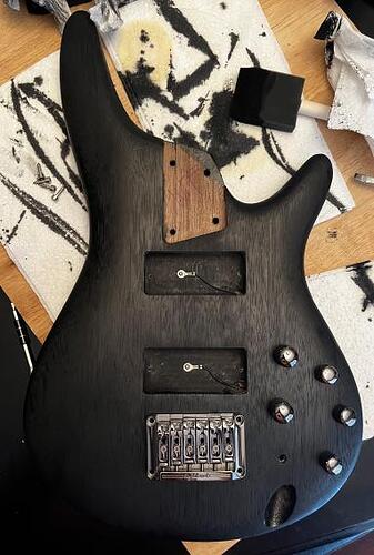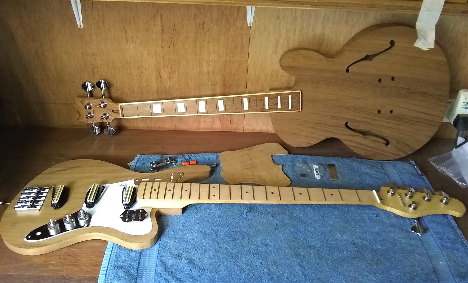 For a Franken-Jazz : a 34” scale maple neck and fretboard for a 5 string. I know there are those who advocate for 35” scale B strings but I watched Scott Devine enthuse about a 31” scale 6 string, so I added two carbon fibre bars to stiffen up the neck (I can’t tell any difference though).