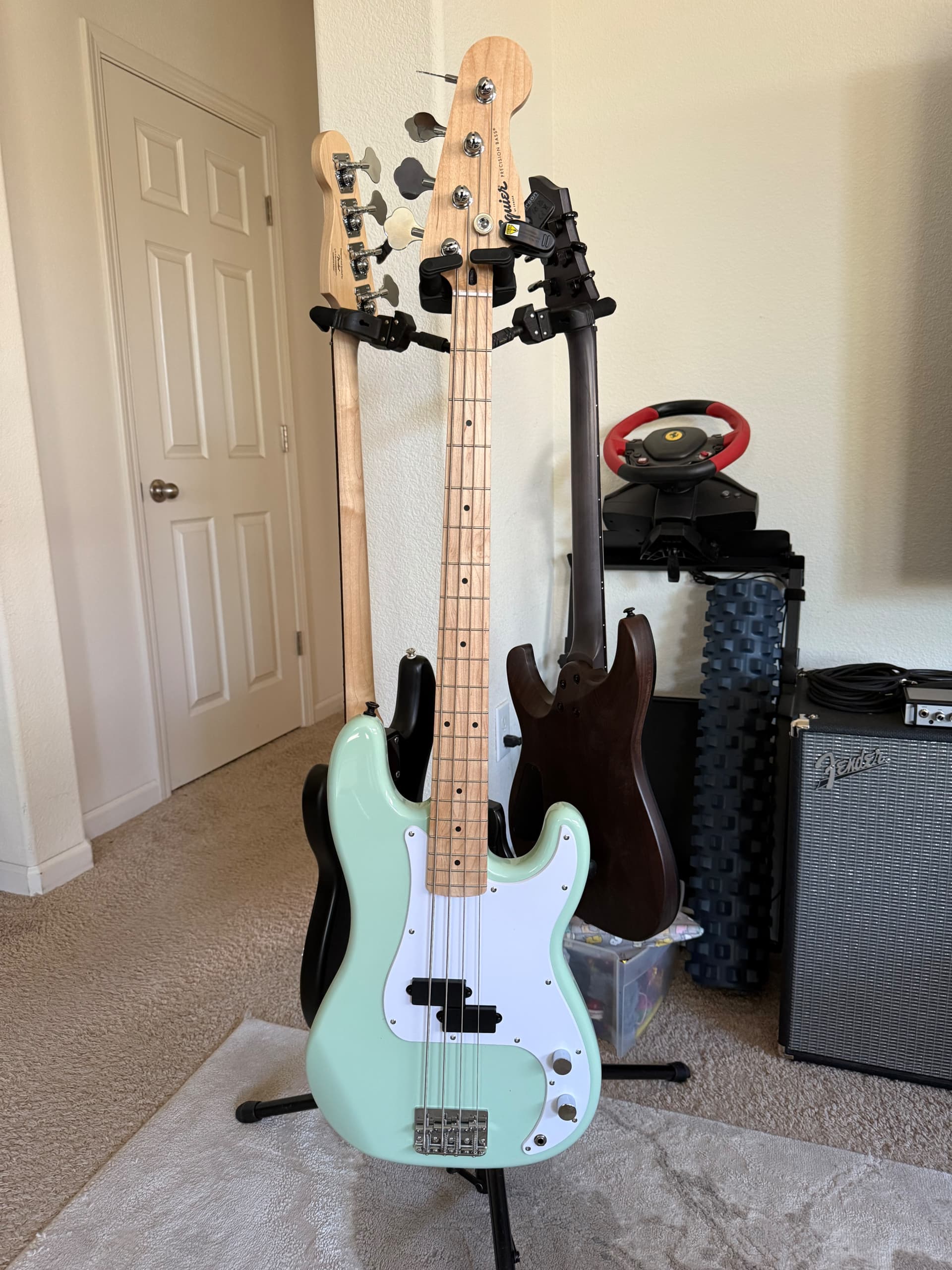 I actually wanted the Fender Duff McKagan signature bass (from Guns n Roses). That bass is around $/€1600. My Squier Classic Vibe 70’s P bass has almost everything the duff bass has, but costs at least a few hundred bucks less just by modding my bass and not buying a brand. Also, it’s fun making your own FrankenSquier