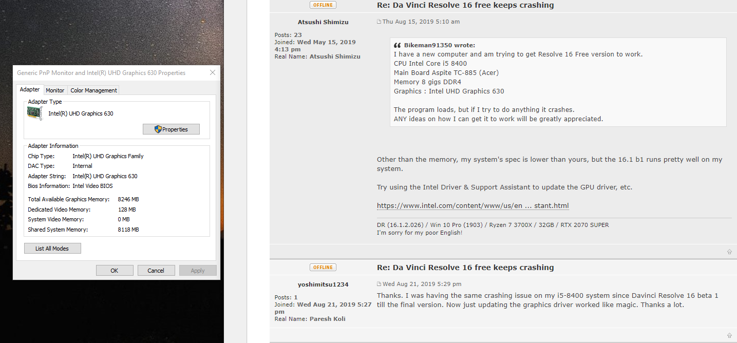 Anyway I shall be looking into all this. Thanks again. I also looked up that link Pam posted for the specs required to use Resolve.