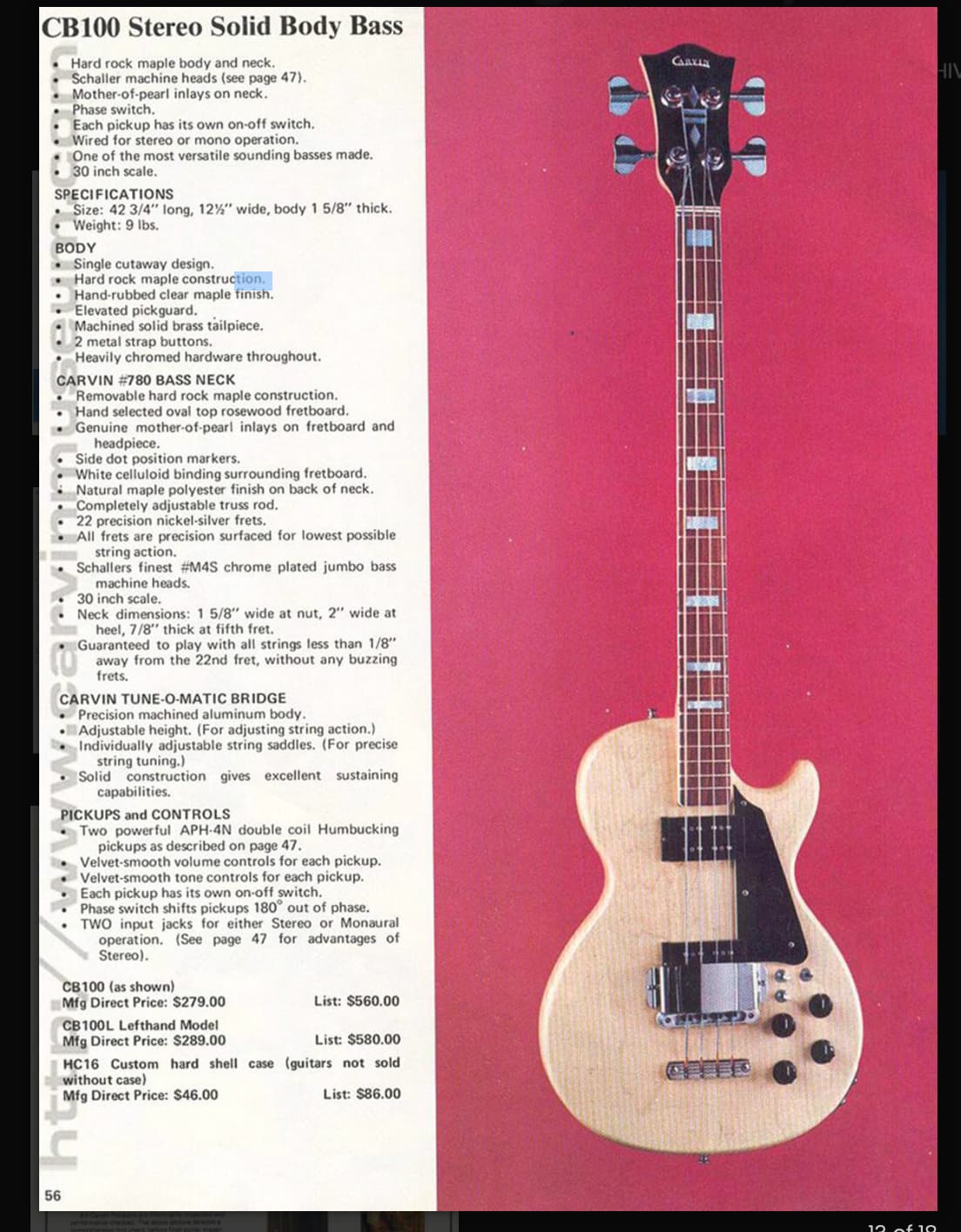 It’s a 1976 Carvin CB 100 offered for US $600 (negotiable) including the case.