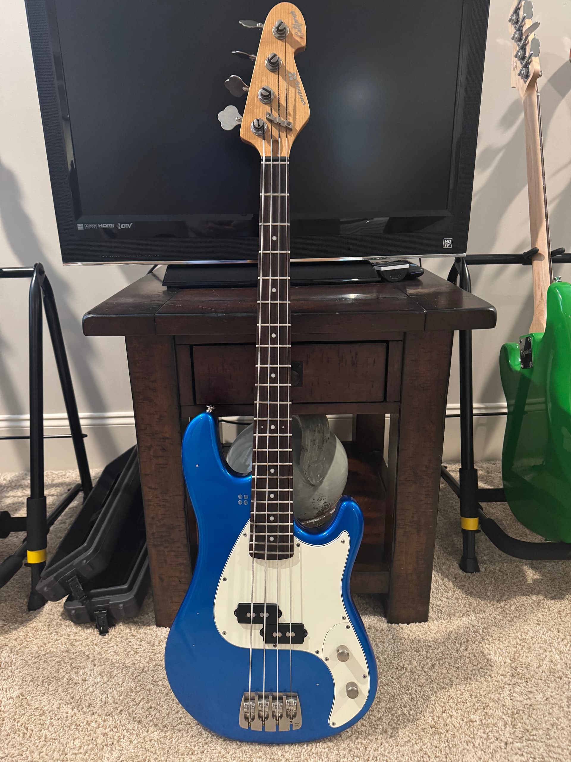I bought mine right after the second version was released (new finishes; got rid of the racing stripe versions, which I hated) for $699. It quickly went up to $799. It was difficult to find. I finally tracked one down at zZounds, the only thing I ever bought from them. It’s a really well-built Indonesian bass. Excellent hardware (tuning machines, bridge and passive electronics). The neck is perfect for me (more J bass; less P bass). Fast satin finish. I bought the Carbon Gray finish. Love it. The only change I made was to restring it with the La Bella DTF 760F-MUS flats (.043, .060, .082, .104) that were made for the version of the MIA Fender Mustang that had a through-body only bridge. The bridge on the Banshee supports both top-loaded and through-body stringing. The tones? P bass!