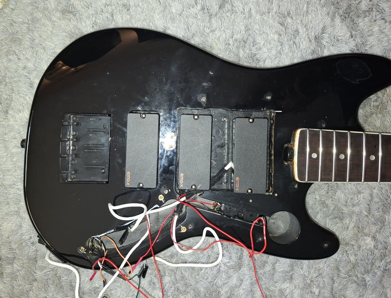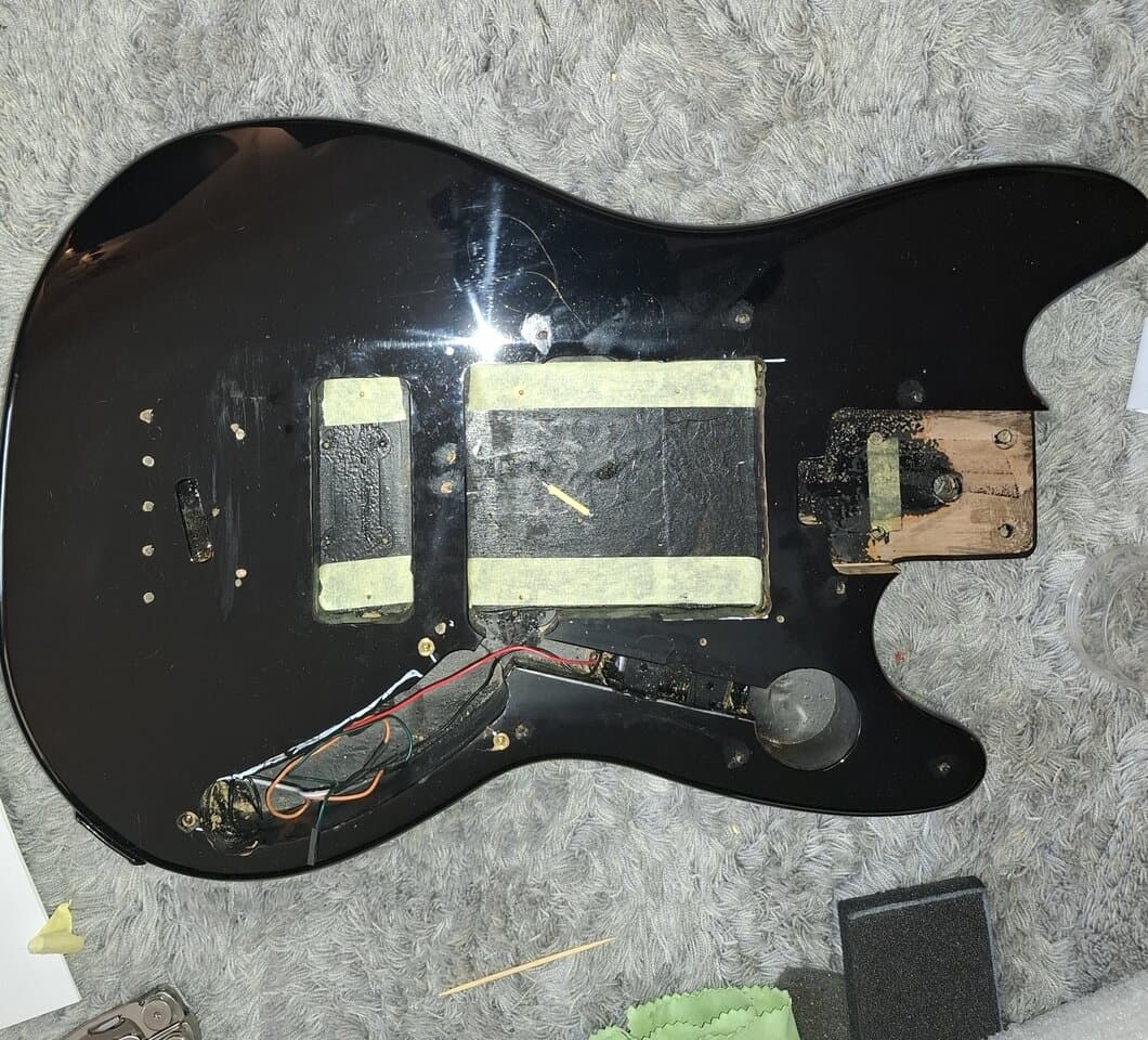 I can tell you: I did not use any power tools. It’s kind of a running gag (at least for me) that I refuse to make a new pickguard.