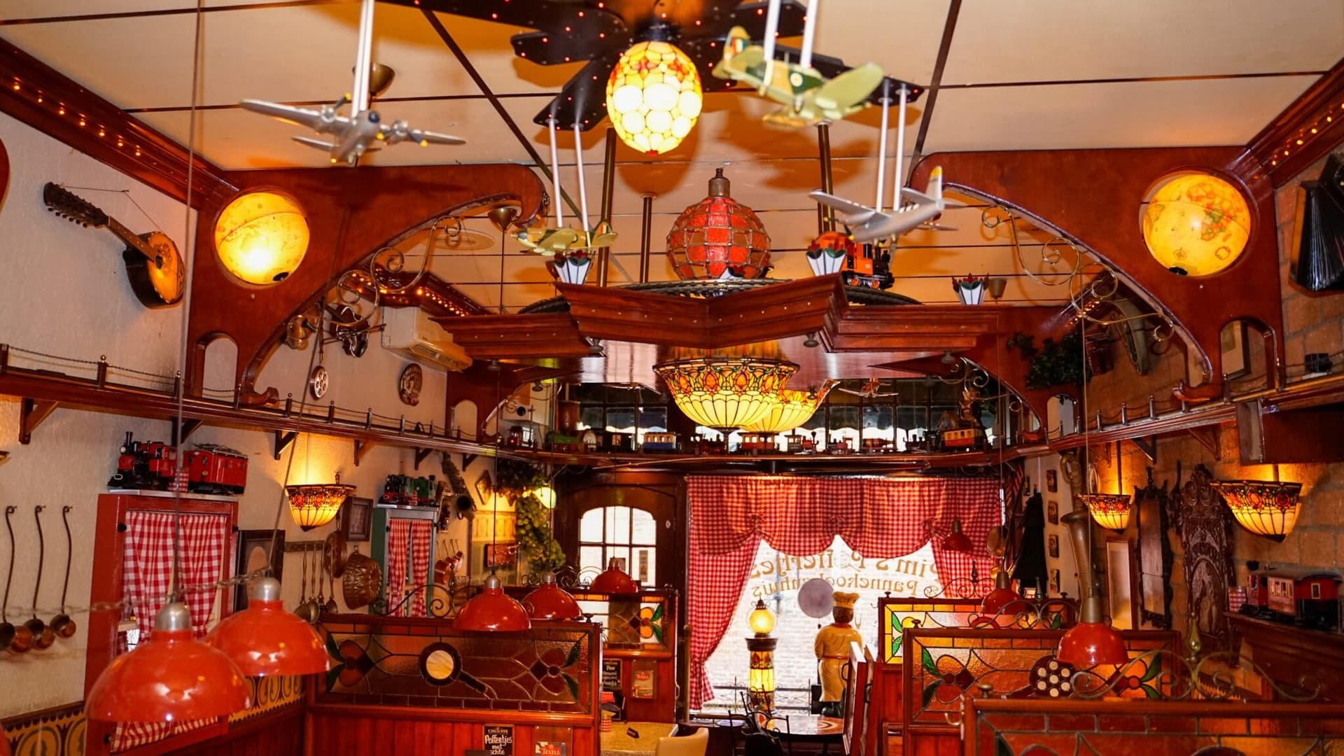 Poffertjes, trains and airplanes! There are so many details in the picture, I almost didn’t notice the trains in the window above the door.