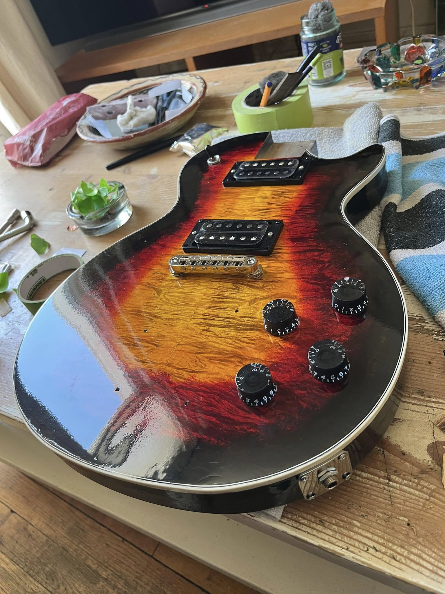 You usually see my Dingwall, cantoonified in my videos. Here’s a better image of the burst, plus the JWST deep field image pick guard (gravitational lensing! Wow, just wow!!)