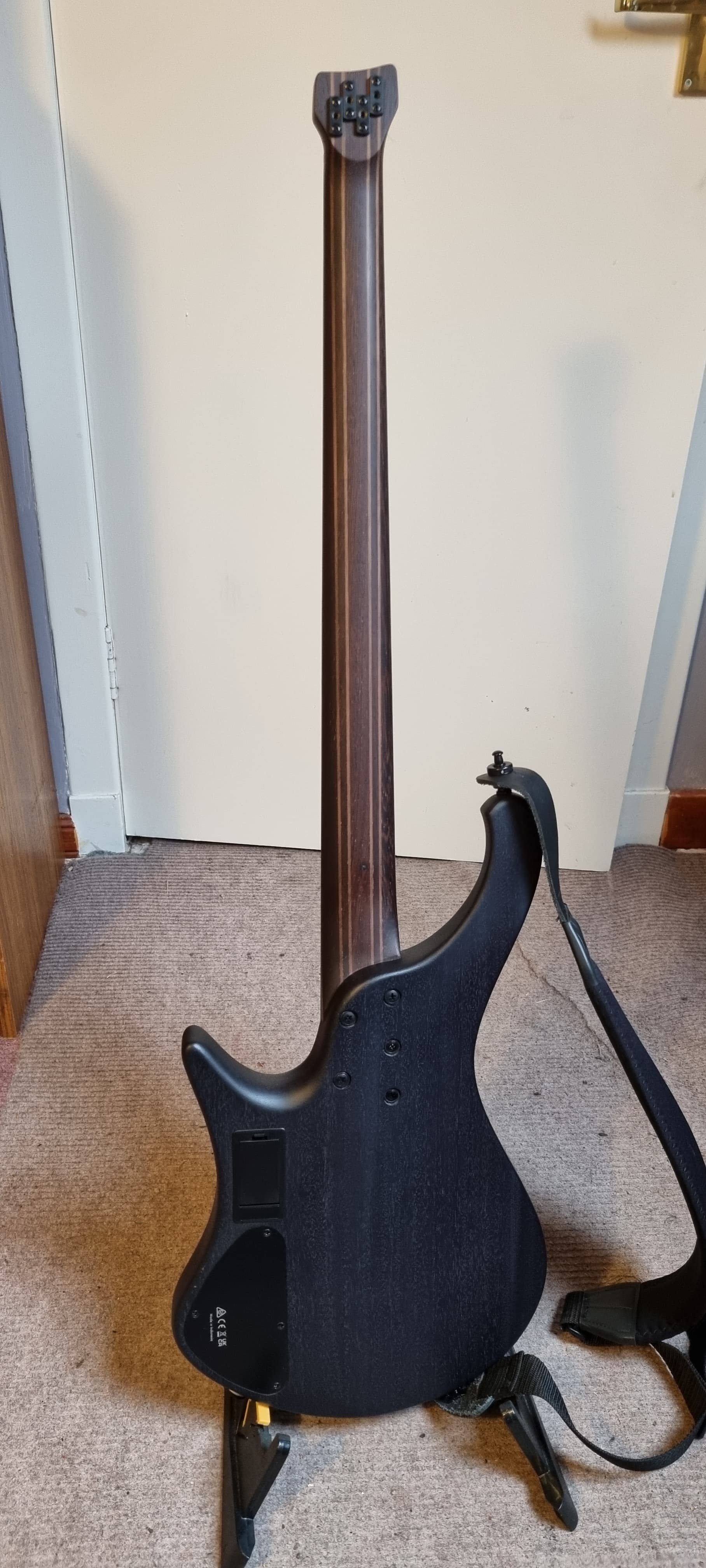 The appalling fret markers (both on the finger board and the side) are a pain but fixable. Also now I’ve been playing for a while I might actually deliberately leave them as they are for now because, being almost invisible it seems to be like removing a crutch and me to get used to just knowing where I am without looking for the marker. So I’m going to wait for a while though I will probably add them to help when I do get lost ![]()