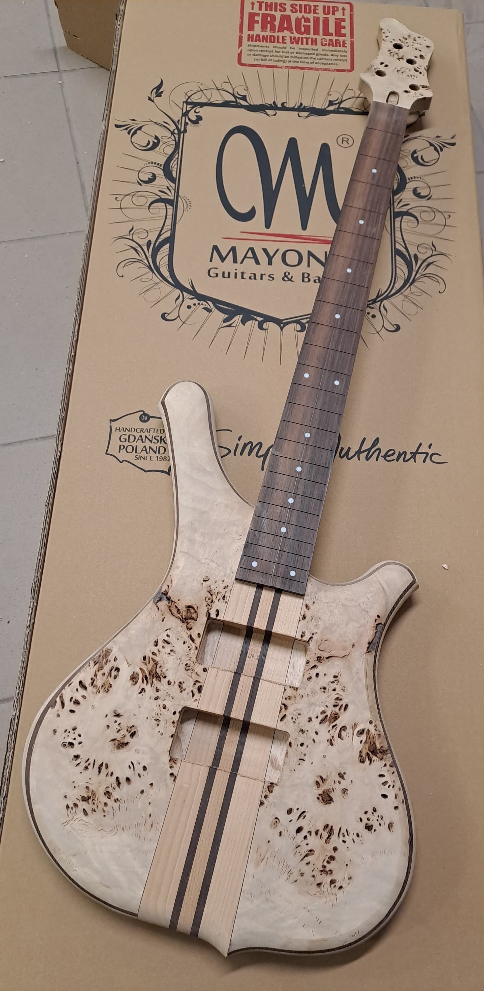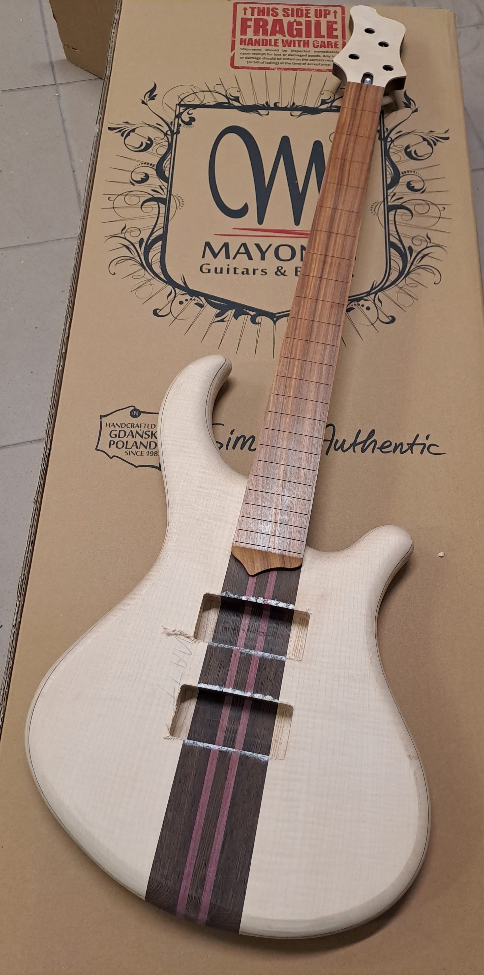 Mayones short scale Comodous builds come from their custom shop. When I contacted them about buying one, Artur said that they had two builds in progress, and sent me photos of each (like he did with the Cali 4 and Cali 5 17"ers that I bought). I could have decided to go through a full design process, but I liked the one I posted and figured I would get it much faster. For reference, here is the one I didn’t choose.