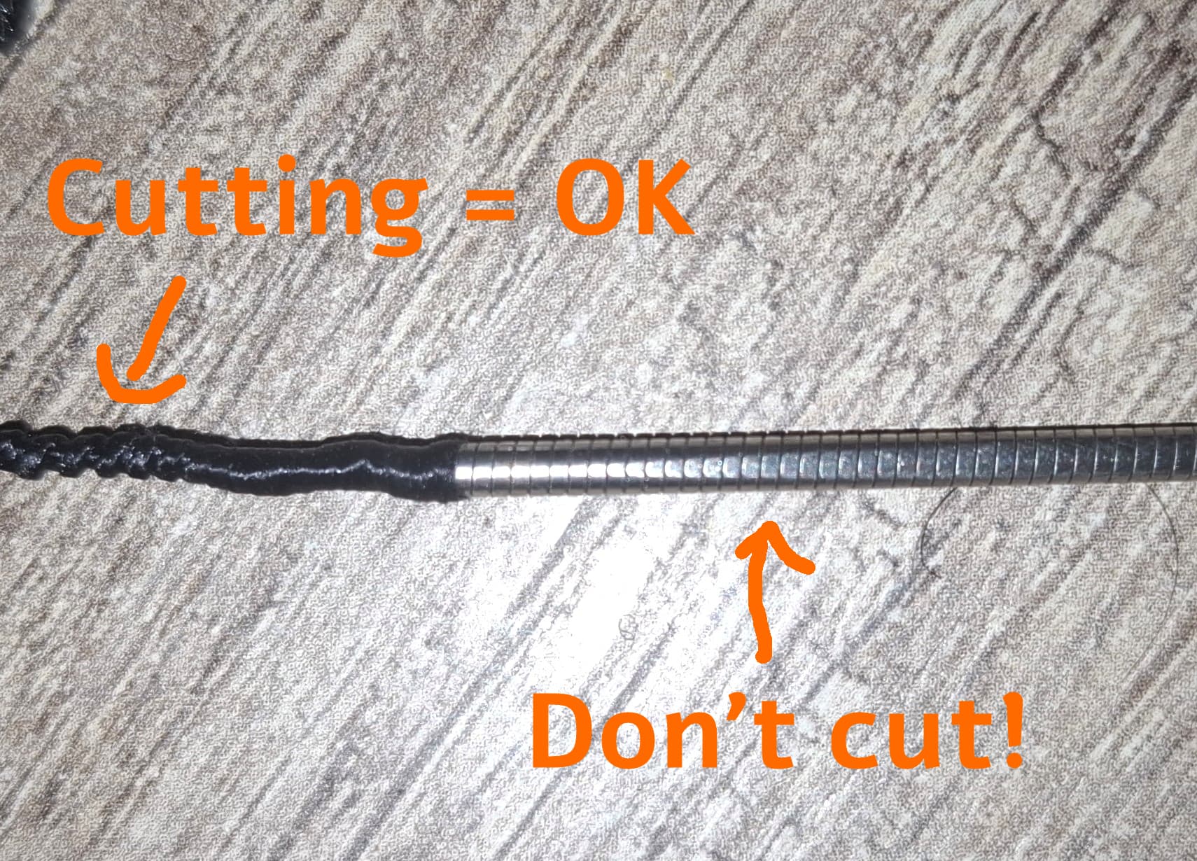 (This is a string I have taken out for cleaning - you can see clearly where I have bent it 90° … of course before cutting).