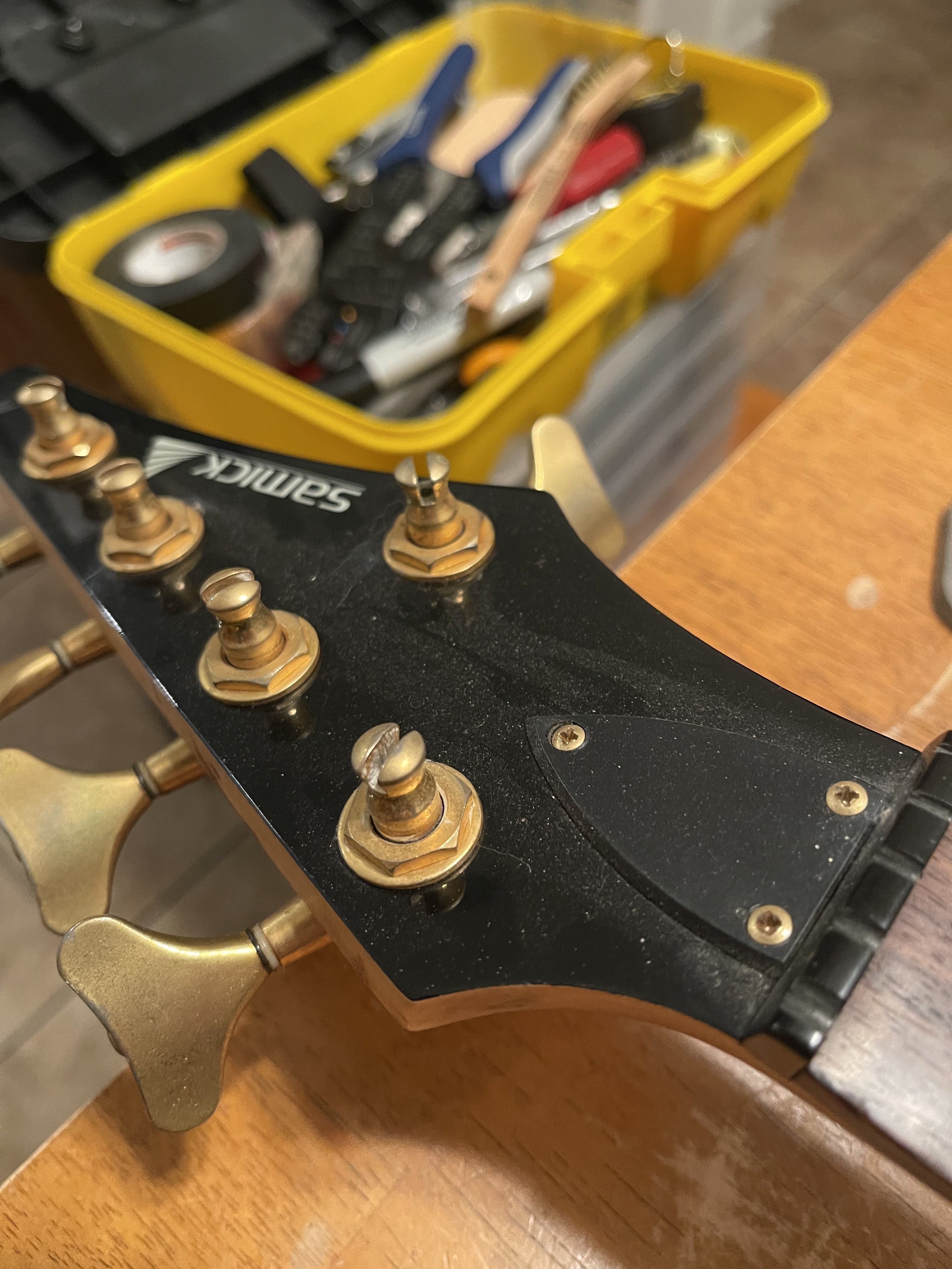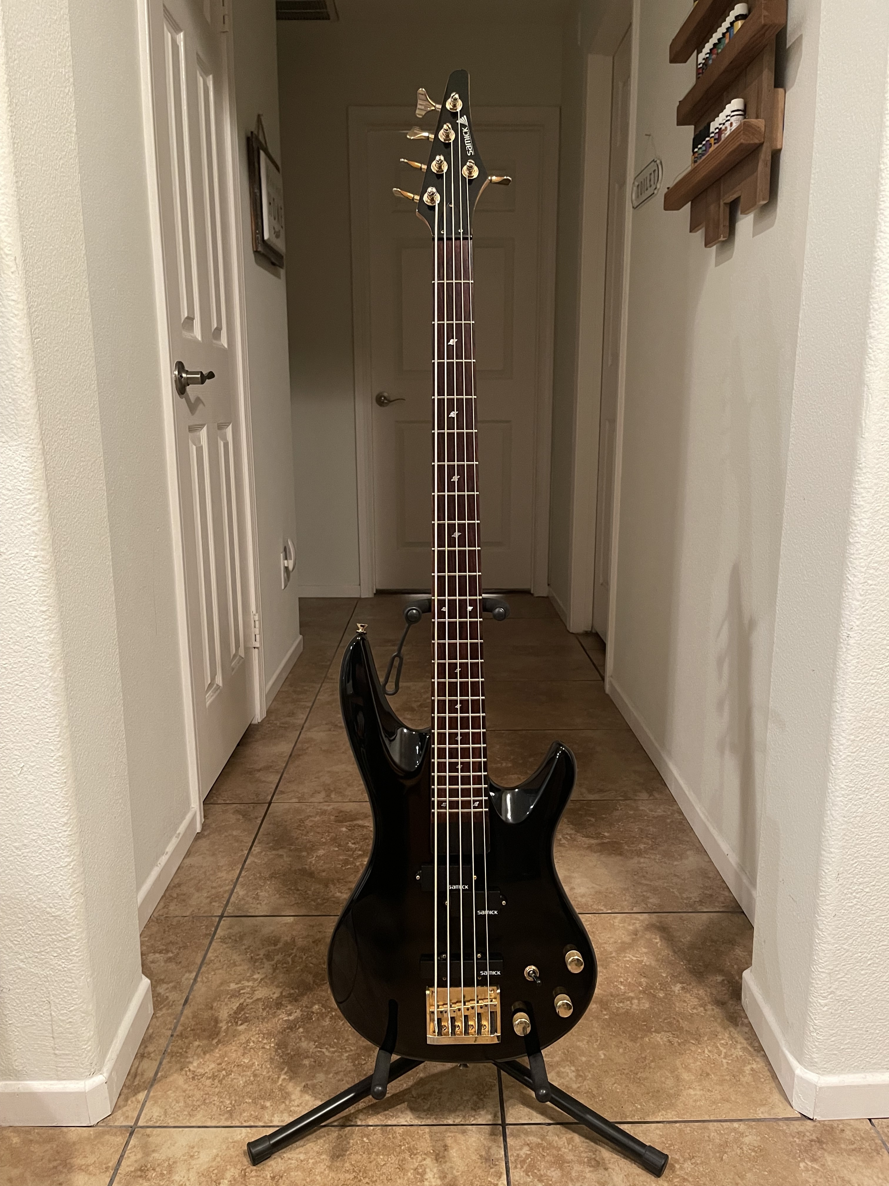 I got rid of all my 5 and 6 strings last year as my 4 string gold Carvin from @JustTim has become my primary bass. A buddy acquired this in a trade and for the price of one of my boost pedals it became mine. Spent quite a few hours cleaning it up and new strings last night. Not too bad. Itch scratched.
