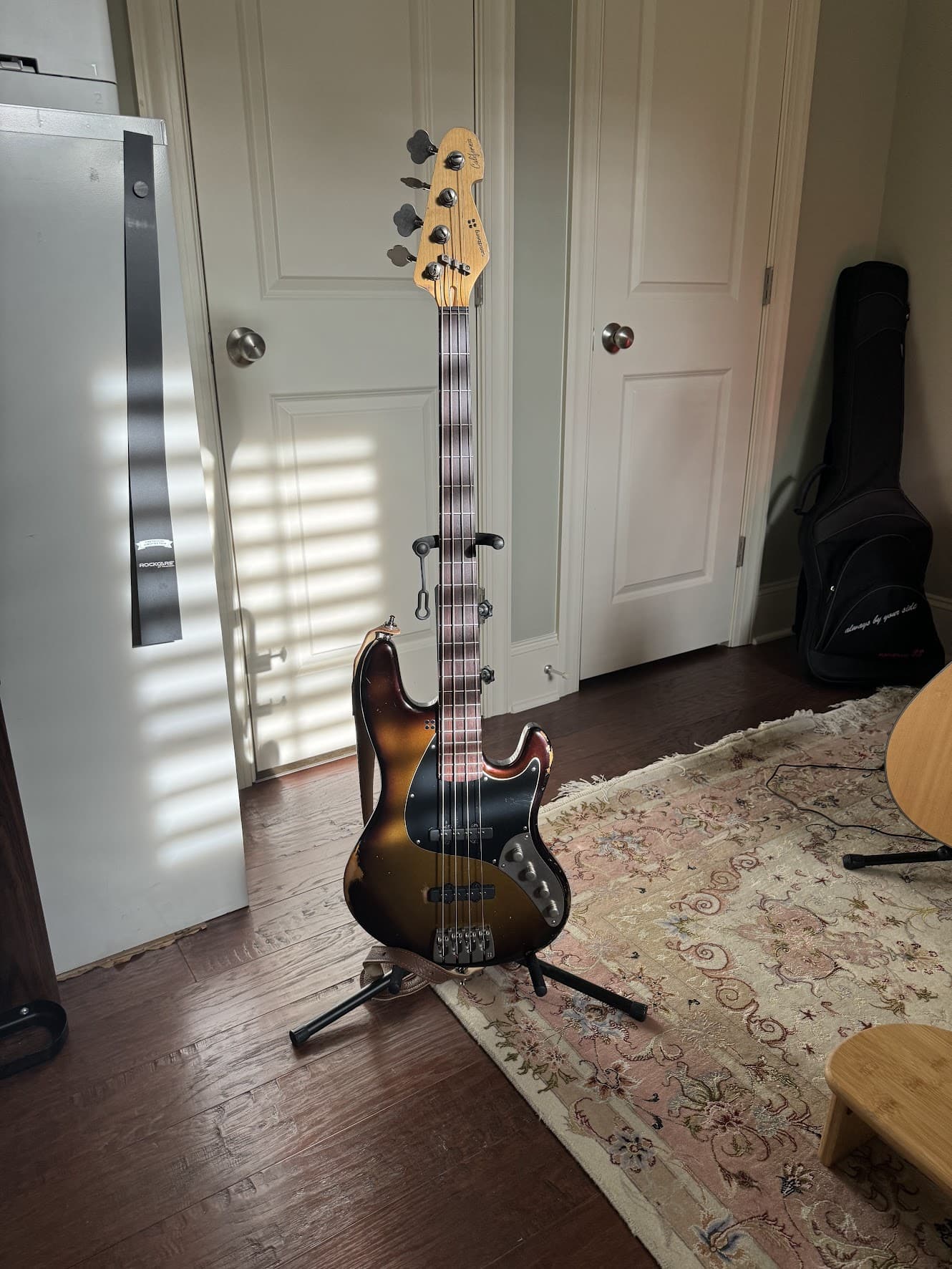 My only long scale bass is a MIM '63 reissue Jazz that looks just like yours. It was a nostalgia purchase (my first bass was a used '63 Jazz I bought in '67). It was the first bass I bought after firing my 3rd and final ex and started playing again. The neck was never stable. I forgot what a PITA truss rod adjustments were, having to pull the neck. It finally got to the point where the truss rod was maxed out and the neck needed shimming. Thatâs when I blew out my left shoulder falling on ice. Once I healed enough to start playing again, the reach to the first fret wasnât pain-free, so I bought a 2013 faded cherry SG. Iâve been buying and playing nothing but shorties ever since. The strings are off the repro Jazz, which is now in storage.