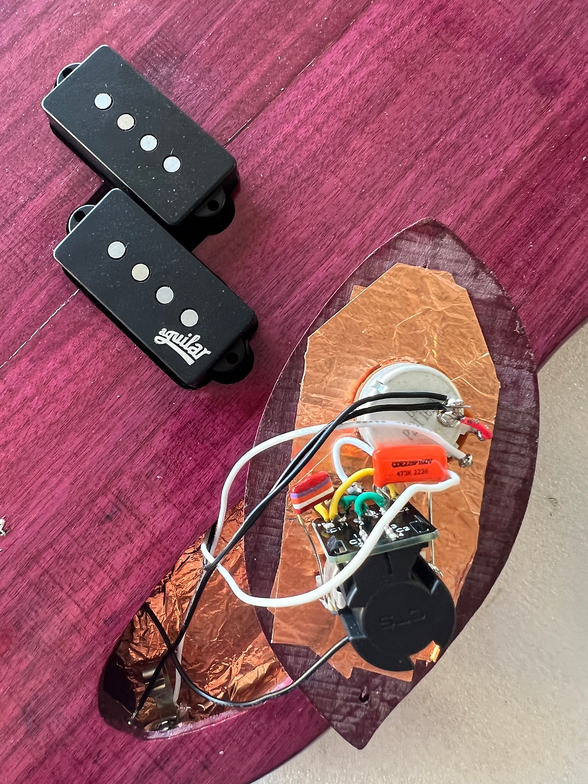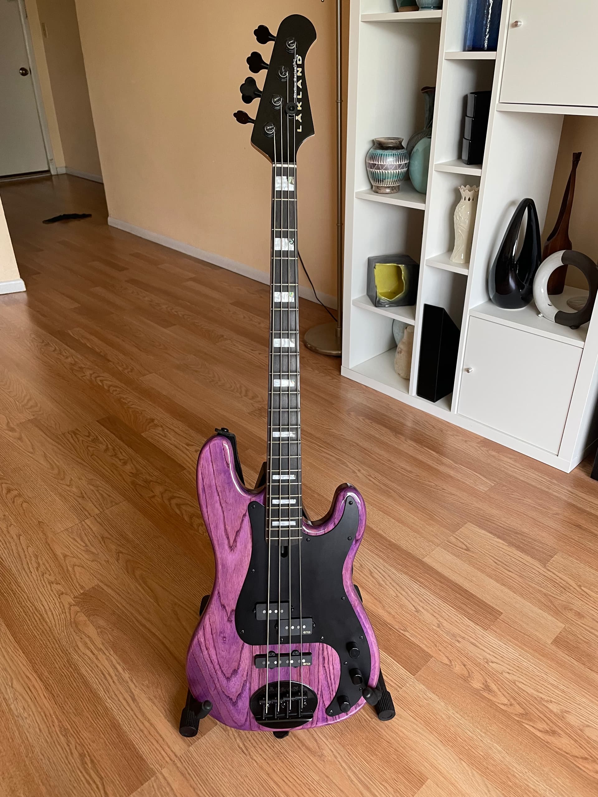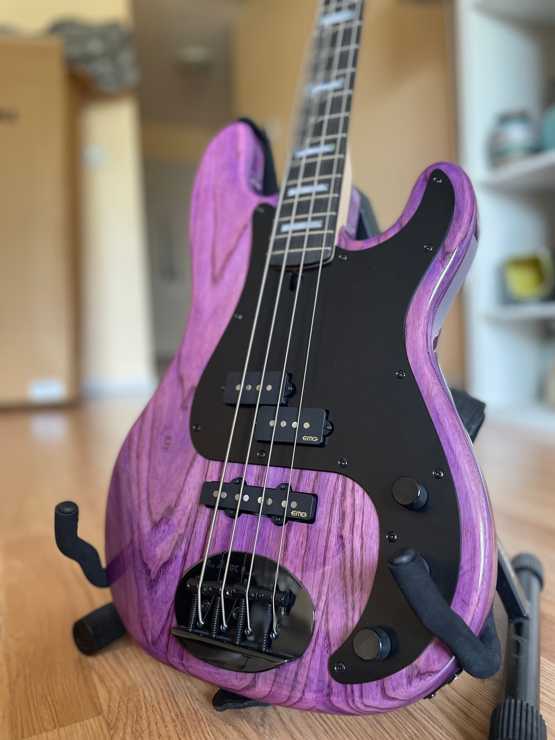 While purple ain’t my thing, your bass is beautiful. Love the wood grain and translucent stain finish. I imagine it would look seriously good in a similar red or blue treatment (my prefs).