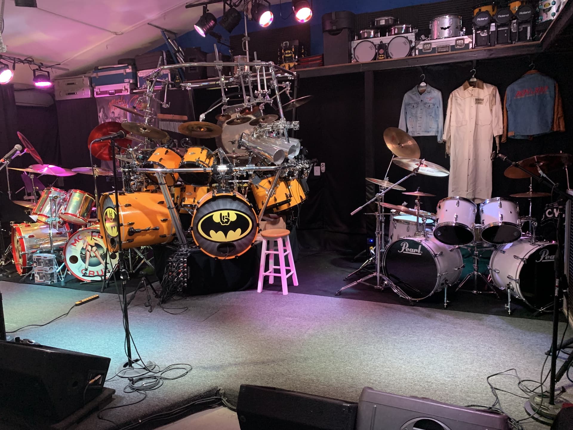 @John_E Indeed! The Motley Crue kit from the Girls Girls Girls tour, Bon Jovi’s old kit from the 80s, and Megadeath/Iron Maiden’s old kit (repainted) with drum frame. This is my daughter’s God Father (and my wife’s drummer’s studio). He also owns the Motley Crue kit from the movie biopic that came out a couple years ago which sits in his office, all nice and shiny lol What you don’t see is the other 15 kits the other direction sitting on shelves, in his ambulance he uses as a equipment truck for gigs, and in his other garage. They’ve actually auditioned people who have walked in and have asked him what he plays, he just gives this blank stare is like, “flute”. Makes me shake my head lol