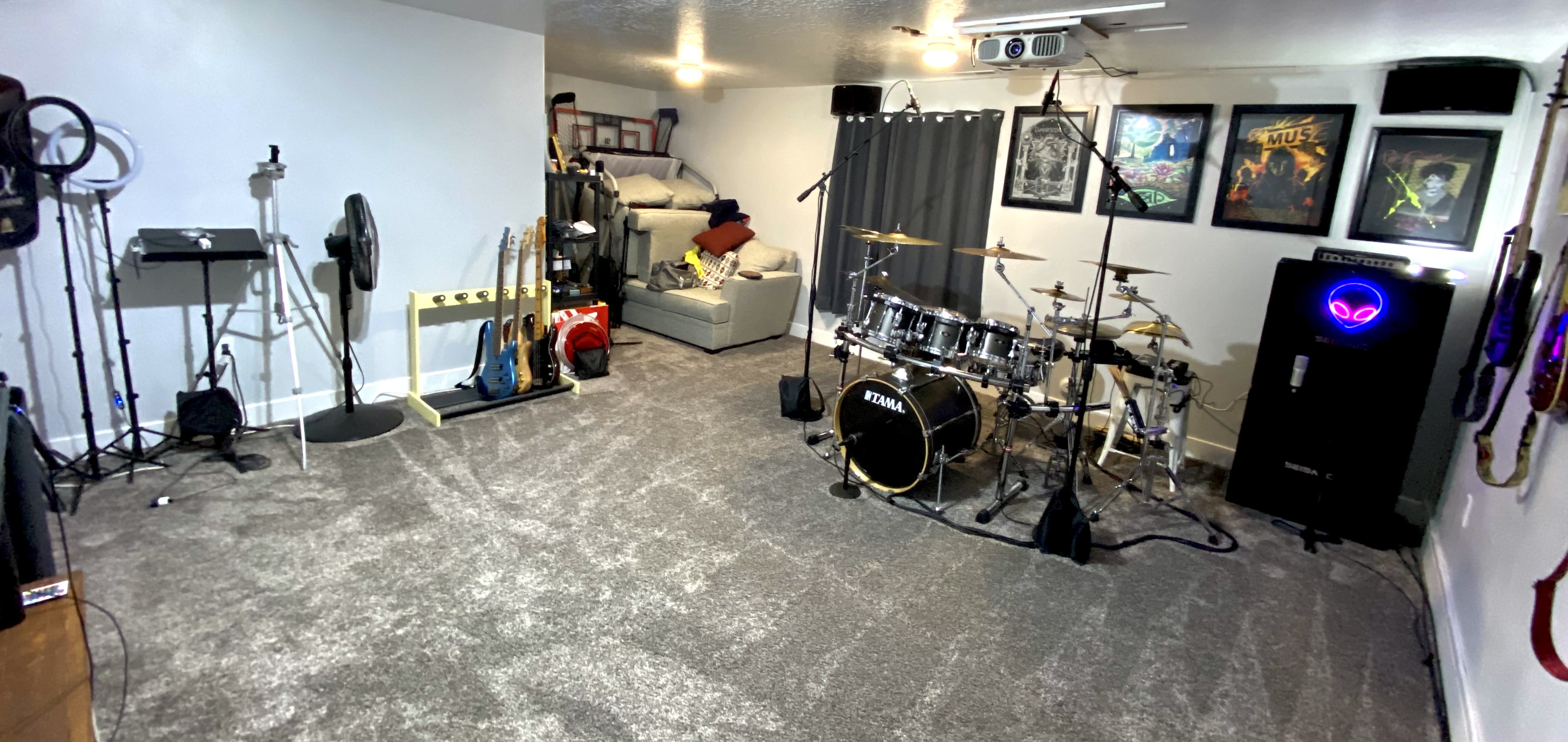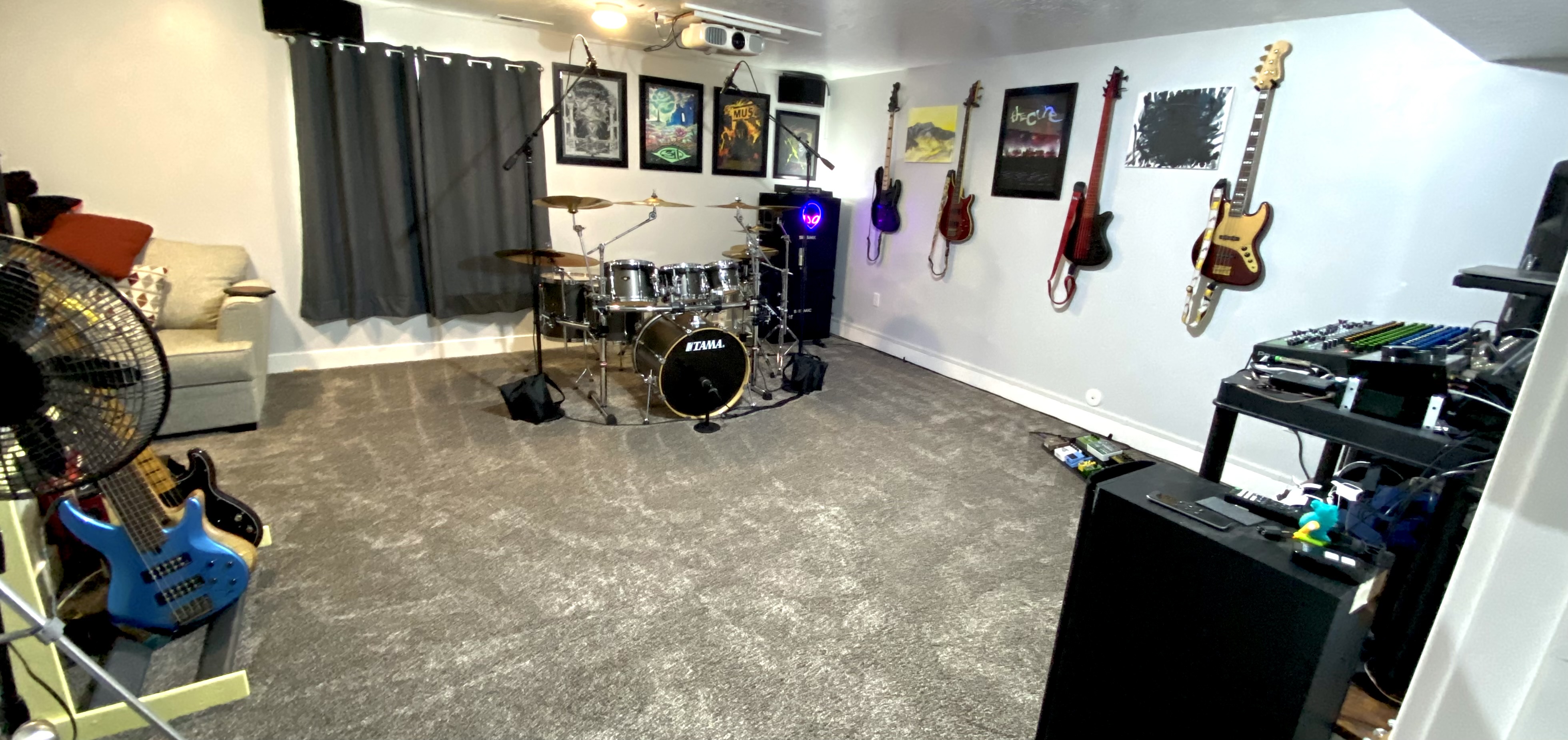 I had dreams of this room as a really cool theater/game room. But every time we watched a movie as a family my wife wanted to watch in the living room. So it has slowly became a music room.