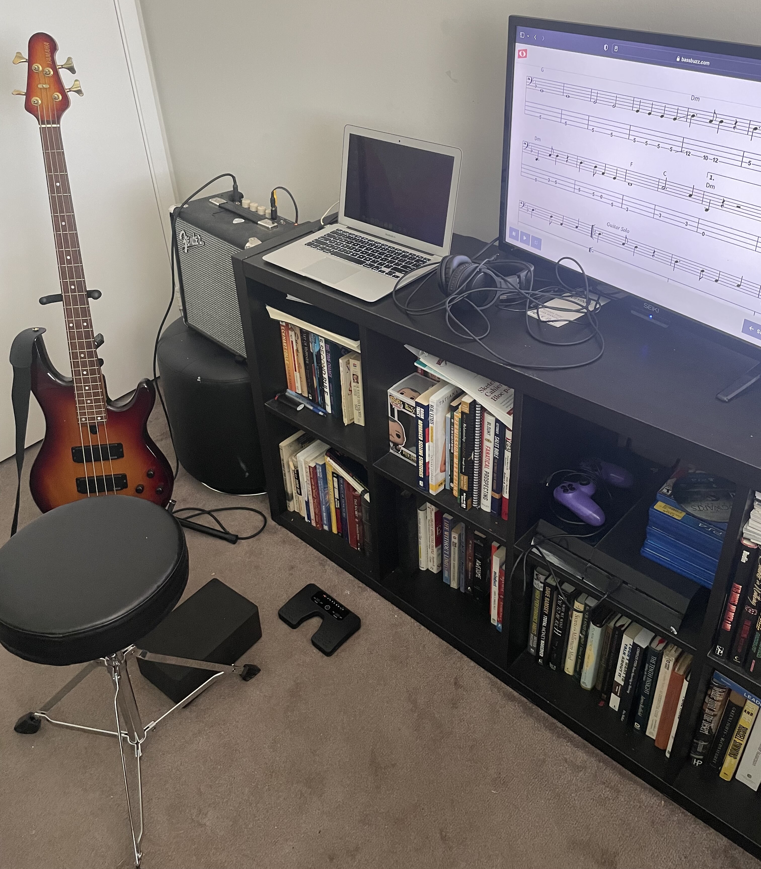 It is nice to be able to move around with out hitting something with my headstock (which happens in my office all the time.)