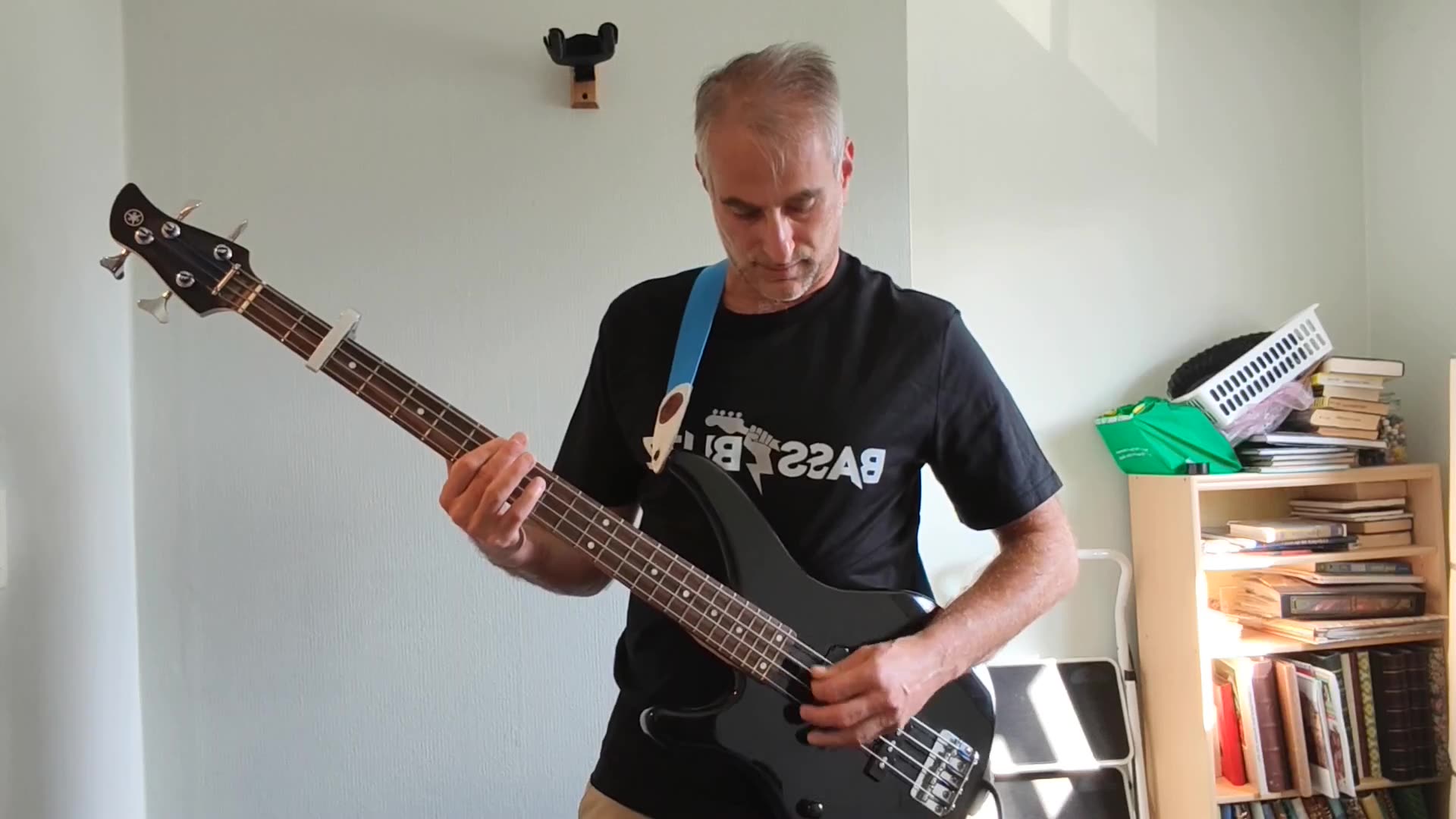 I’m playing alongside the MP3, which I upload to Songsterr, then will reduce the bass level in Davinci Resolve when I film/edit the video.