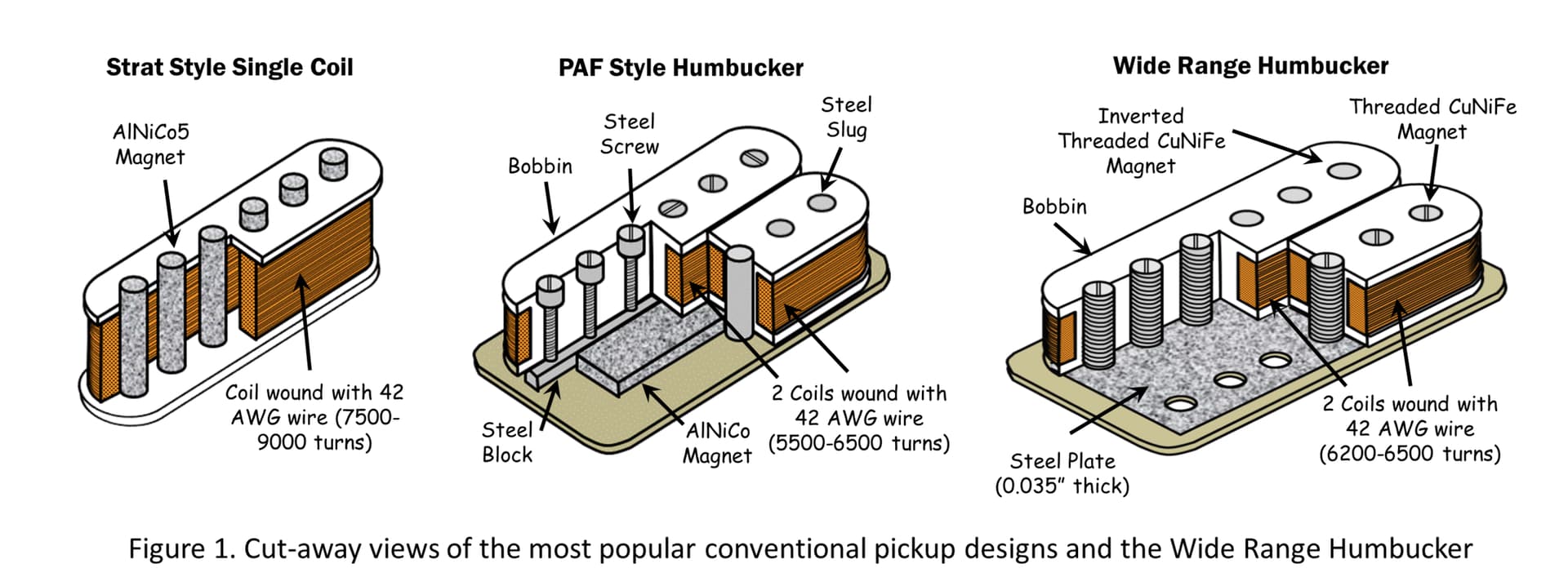 Whereas the Filtertron and the PAF style humbuckers (both from the ‘50s) are much more similar (though still pretty different, mostly due to biasing towards the magnets or the windings). And are what people associate with the humbucker sound; richer/more saturated, heavy mids, less distinct.
