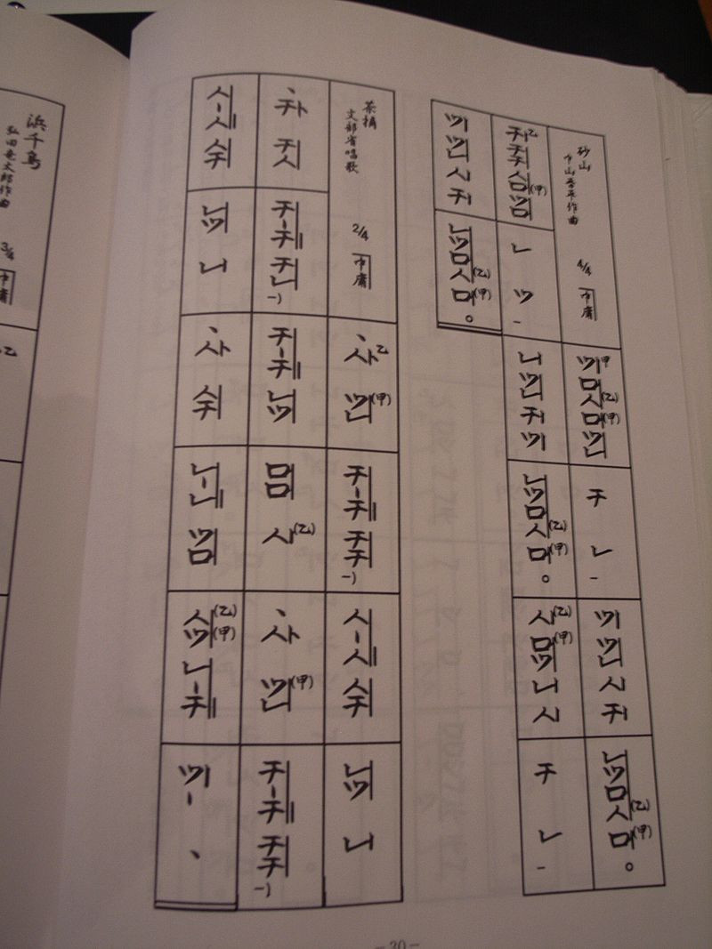 " In contrast to Western staff notation, shakuhachi playing instructions commonly indicate multiple fingerings resulting in various timbres for a given pitch, and microtonal slides between semitones."