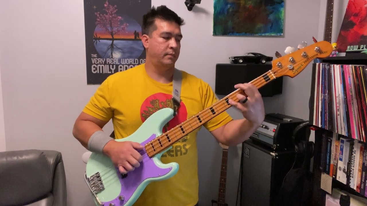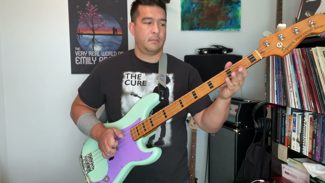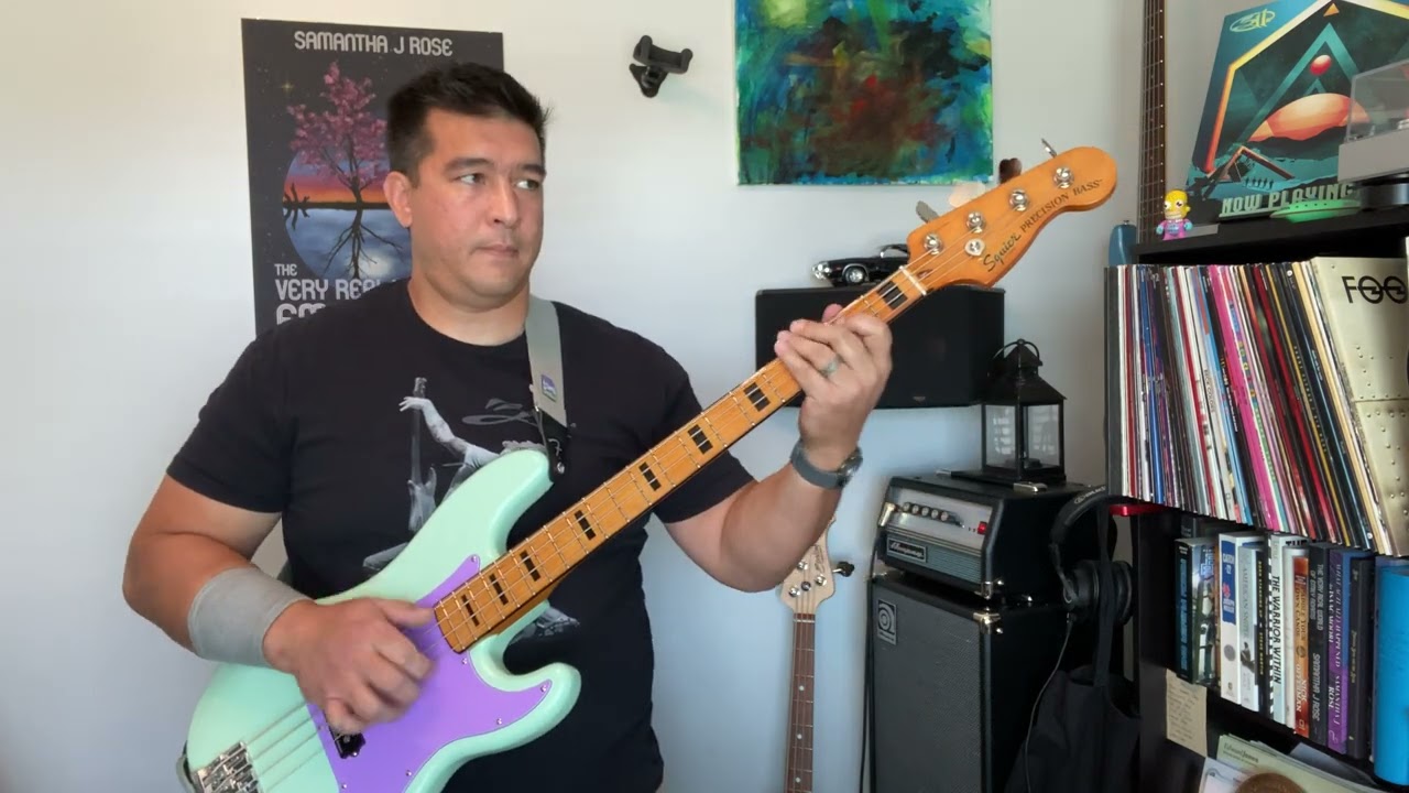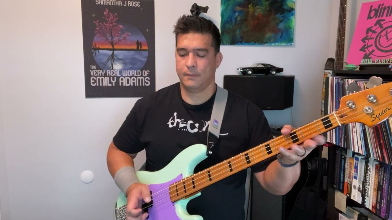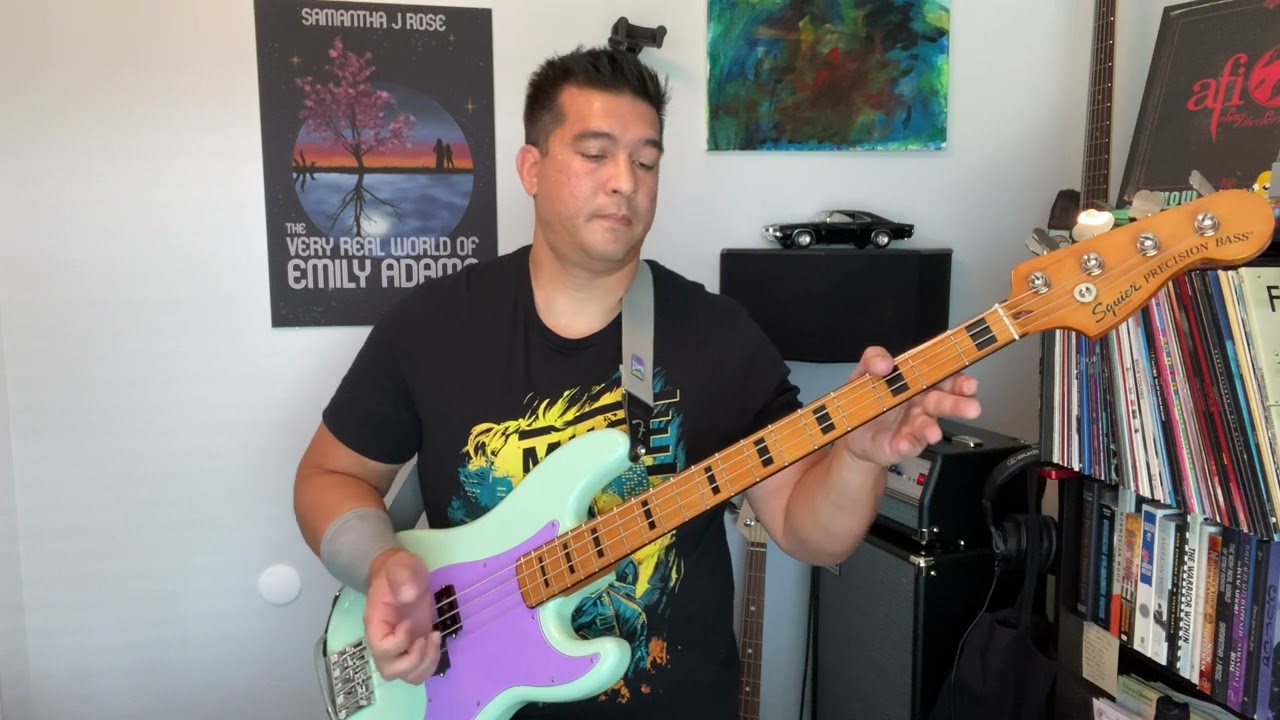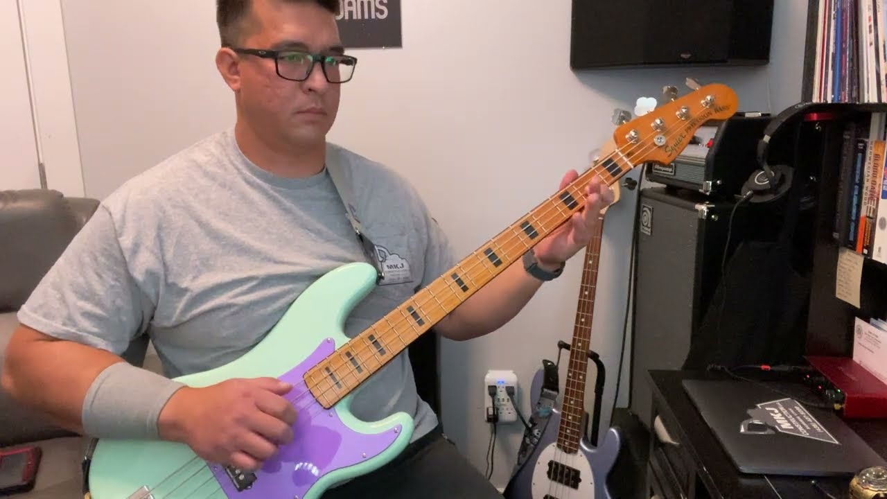 I got to practice a lot more today. It was nice to not be rushed. So my left shoulder has been giving me problems for most of this year, mostly in the area of not being able to do pushups and stuff like that. But I realized today that this groove really makes my shoulder burn, especially the second octave part. And that makes me rush through it after I’ve played it for a while. It’s frustrating. I need to get in to see a physical therapist soon. Other than that, I’m really happy with the progress I’ve made in the last 12 days. I definitely feel more comfortable slapping. It didn’t take any secret formula either, just a clever groove to practice every day.