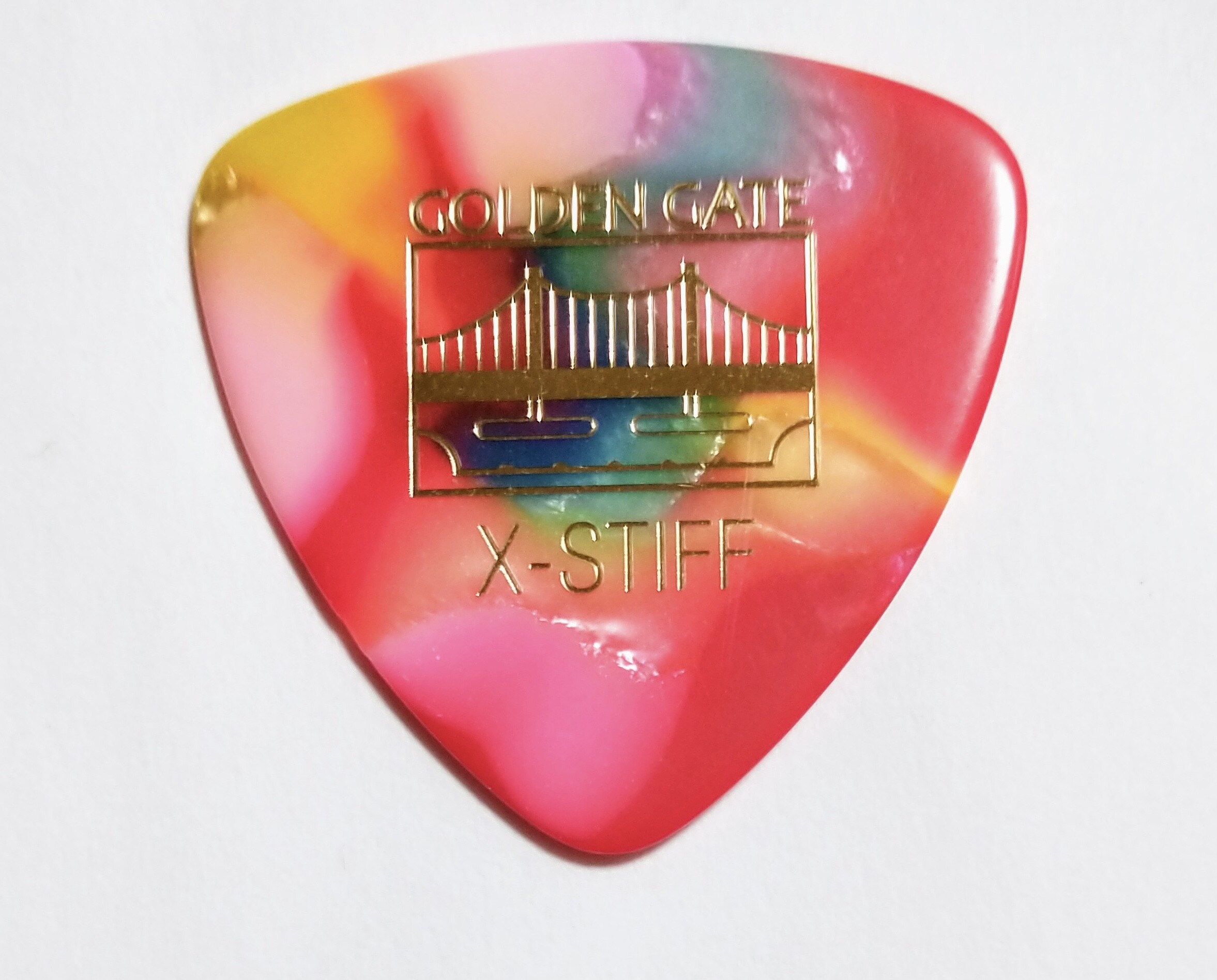 These days I play with thicker jazz III style picks with sharp tips and rounded or beveled edges, if I pick up a pick. I’m not too… ahem, picky