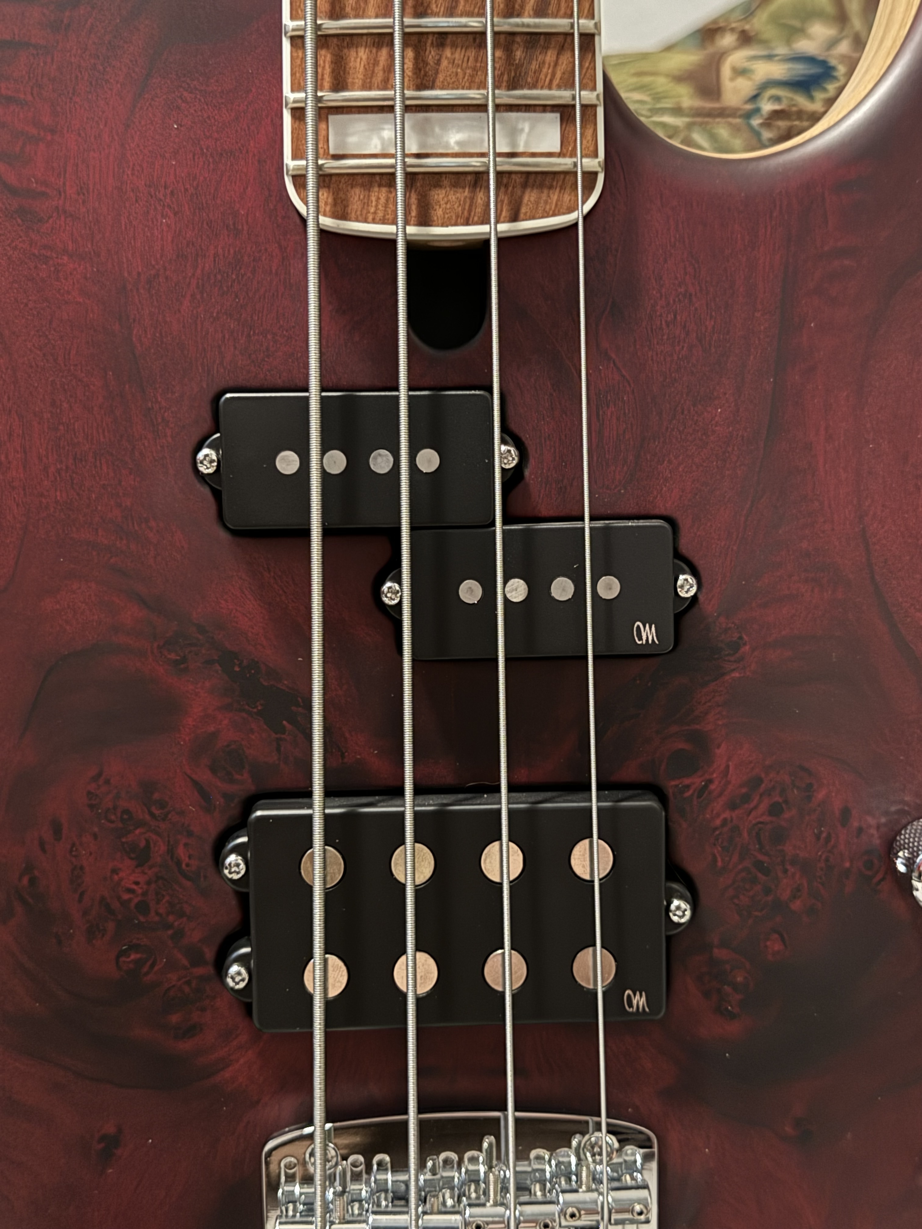 I spec’ed everything on it including handmade 4-string Velvetrone pups and a 9.5” radius neck.