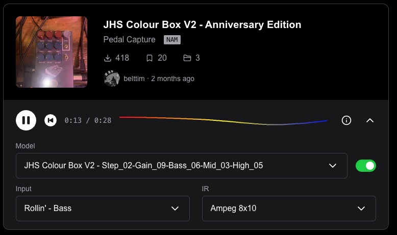 And on the tone3000 site, you can audition the models just by browsing the website. Choose the input audio clip, the model you want to test out, the cabinet impulse response you want to use, etc