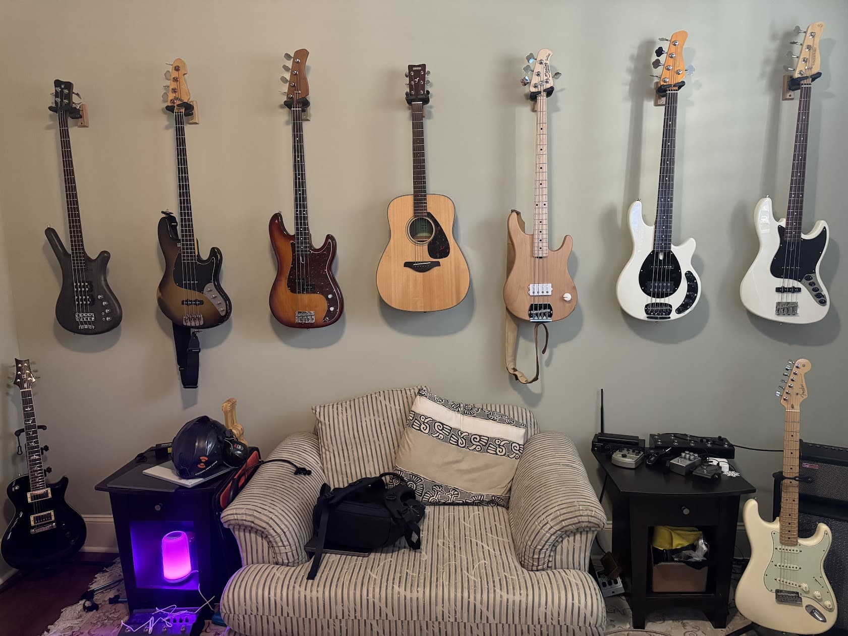 So to practice, I have to get the amp out and set it up, get the bass out of the closet and case, and get my music stand out. And then put it all away when I’m done. Probably doesn’t sound like much, and it really isn’t, but it still results in there being times I would practice and don’t because of the hassle. Also if the bass were more accessible, I’d likely pick it up multiple times a day just for a few minutes to run a few scales or riffs.