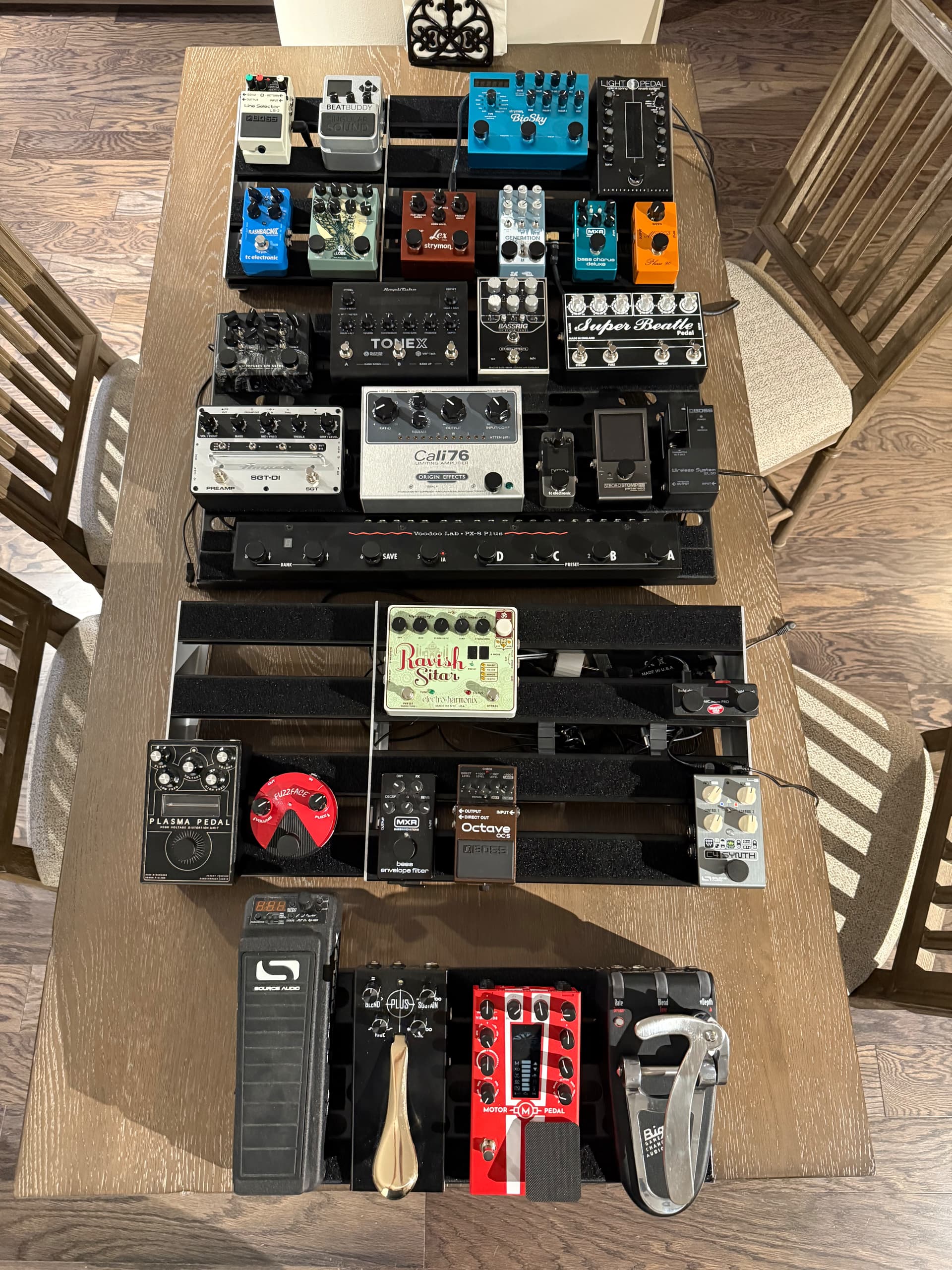 Bass → WL-50 Wireless → Strobostomp HD Tuner → TC Ditto+ (front looper) → Cali 76 Compressor →
